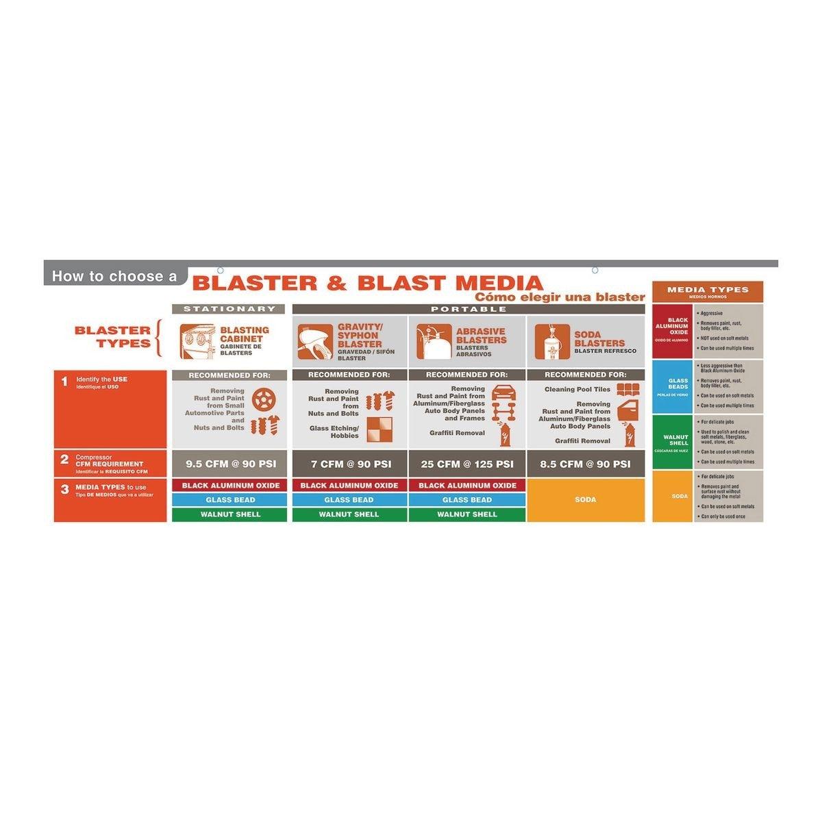 - Efficient Capacity: 40 lb abrasive media capacity with 9.5 CFM at 90 PSI air consumption