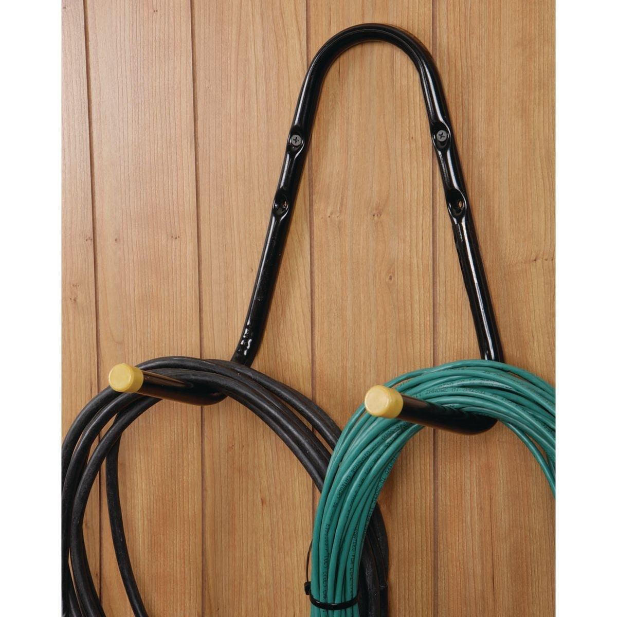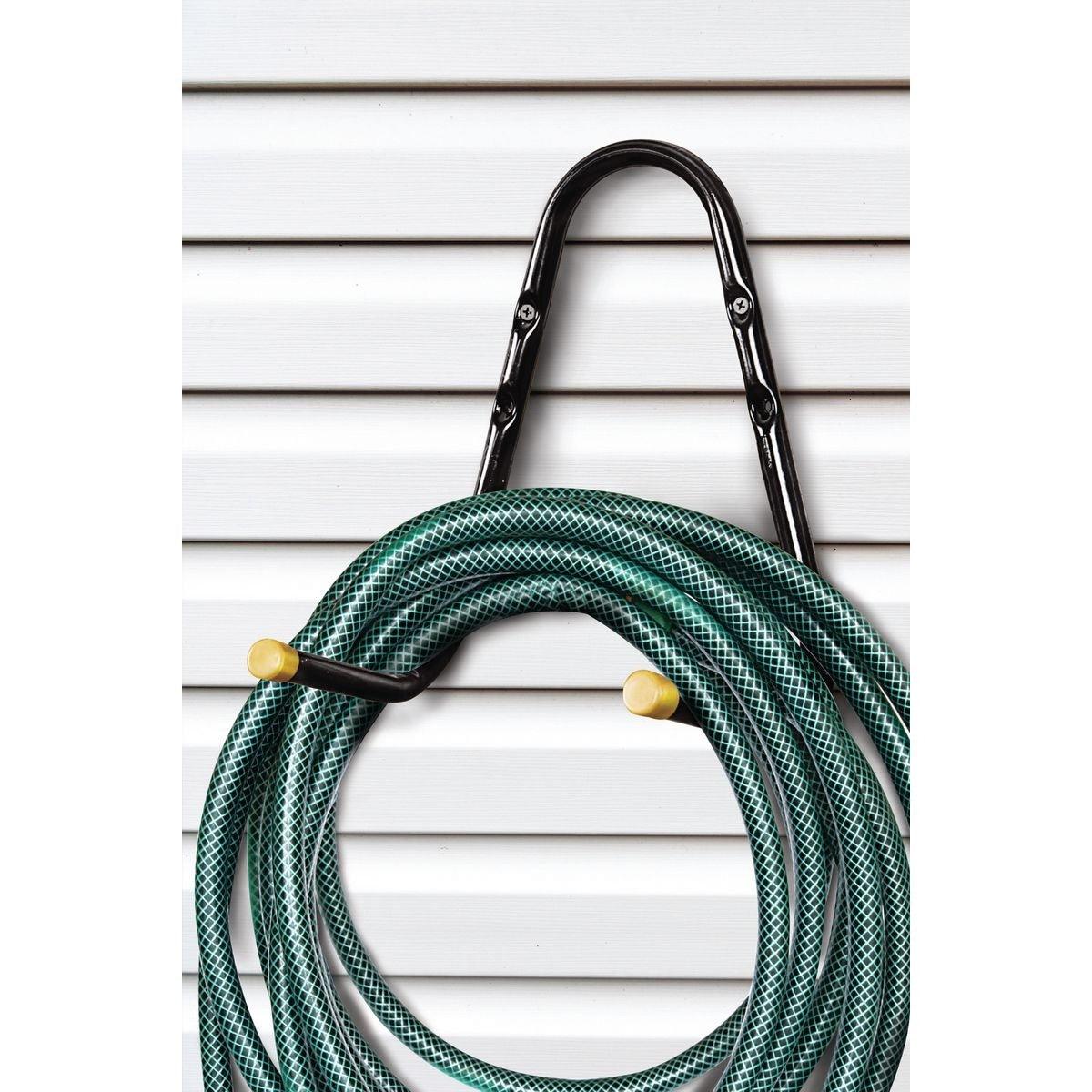 This all-steel hang-all hook is a great storage solution. Easy to mount with pre-drilled holes, this storage hanger lets you store everything from garden hose to tools.