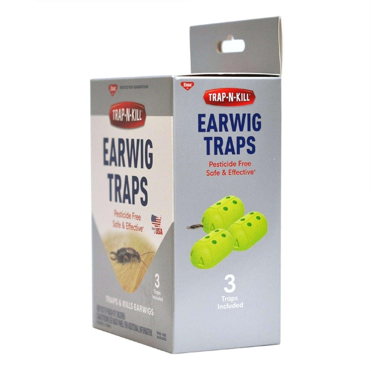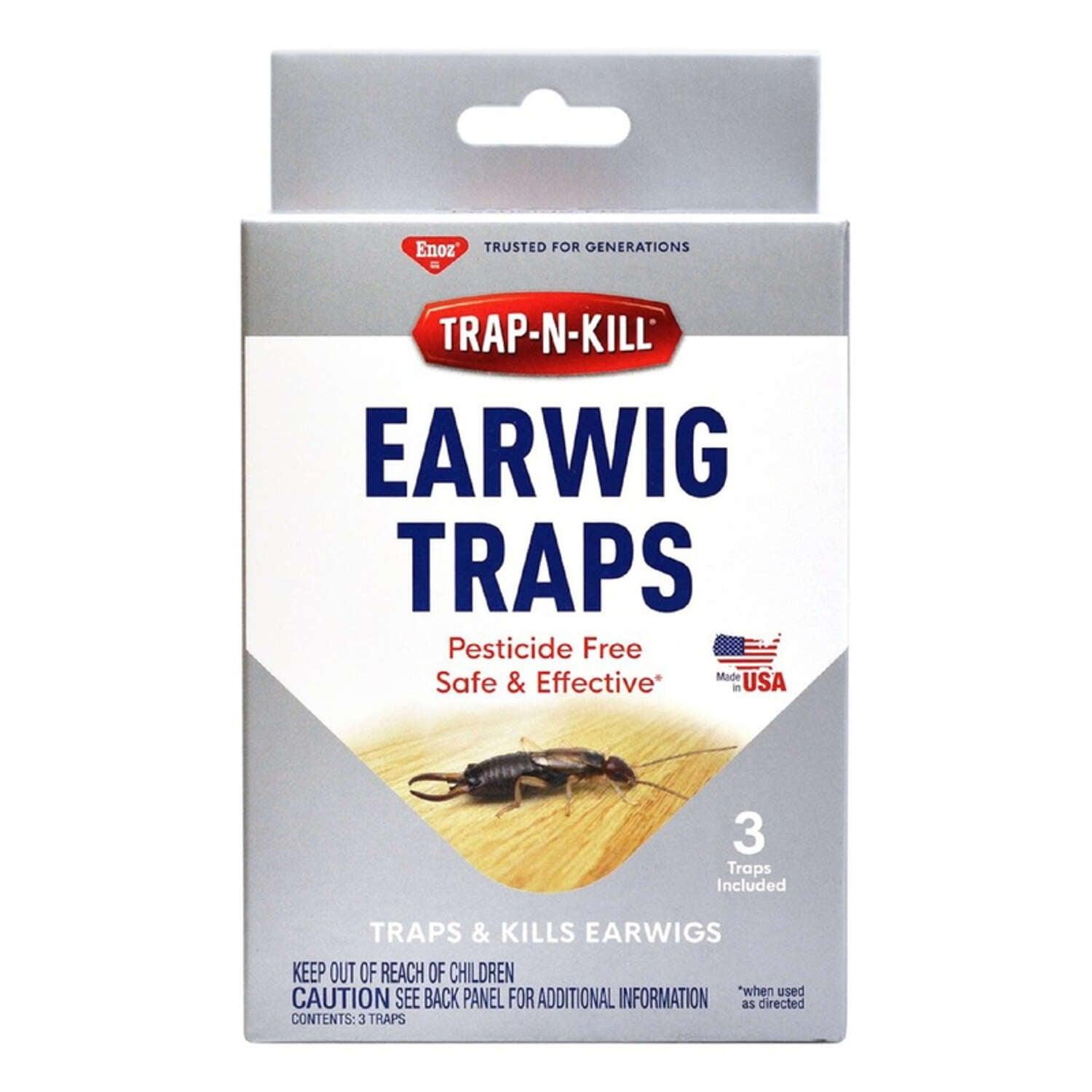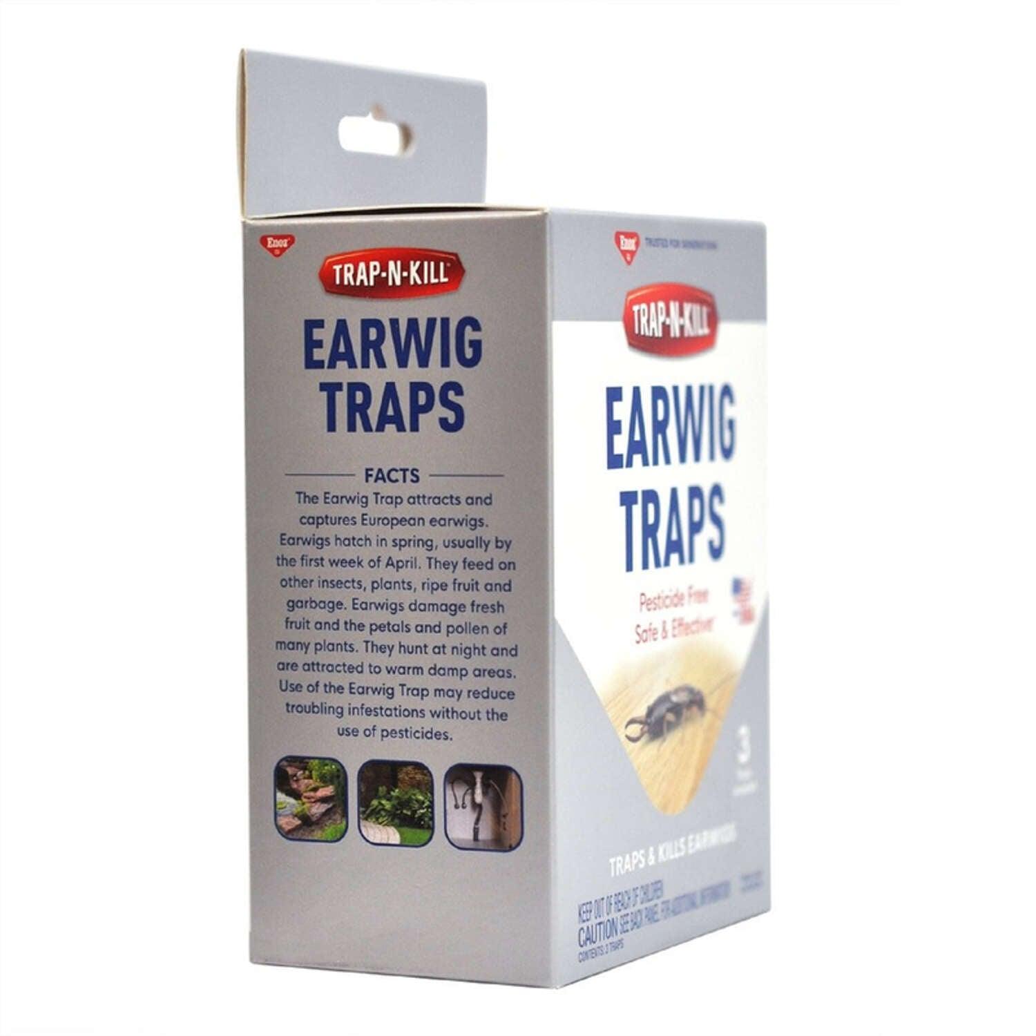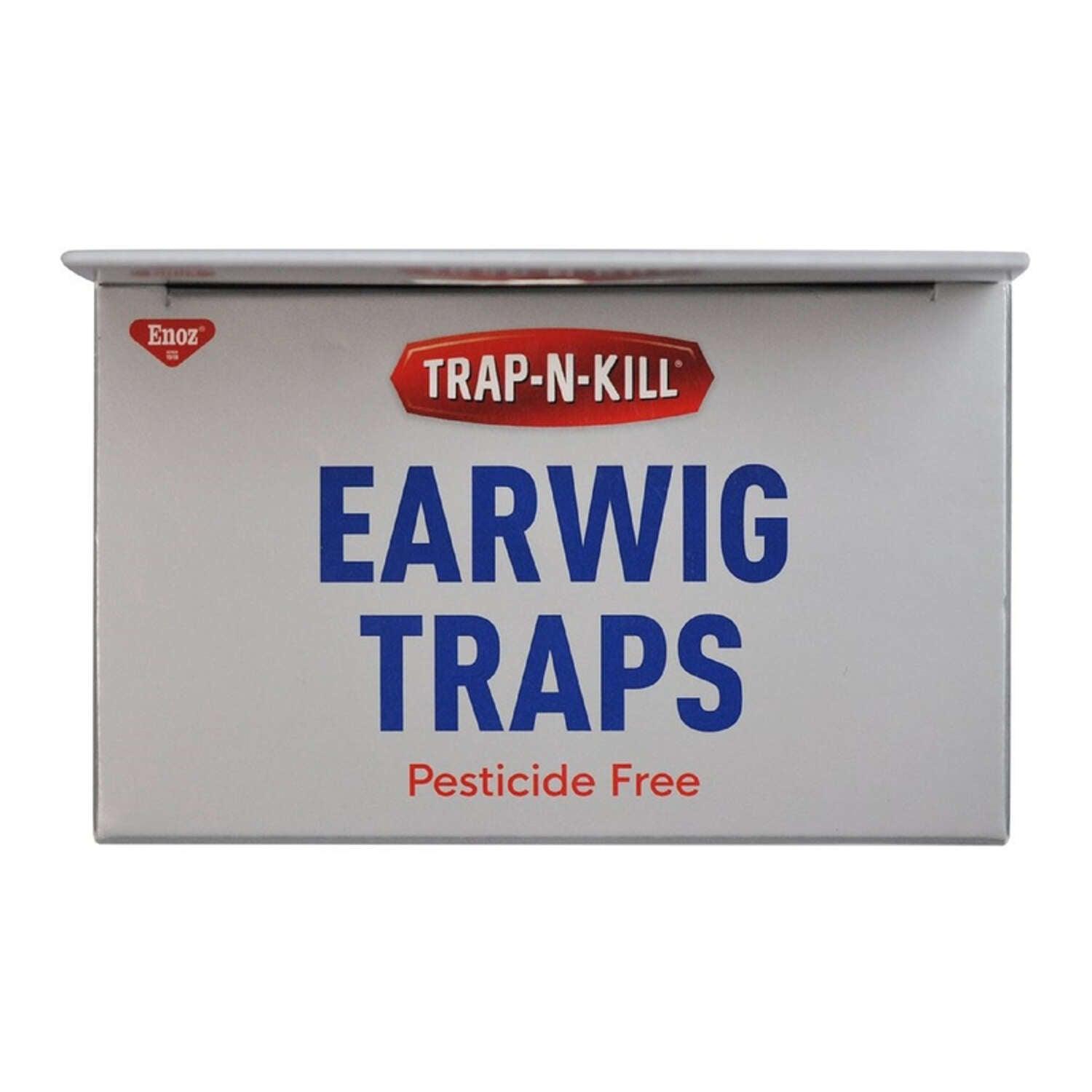 The Enoz Trap-N-Kill Earwig Traps attract and capture European earwigs. Earwigs feast on other insects, plants, ripe fruit and garbage. They are attracted to warm, damp areas which this trap imitates. With the use of a bait and water, this device creates the perfect trap to kill earwigs.