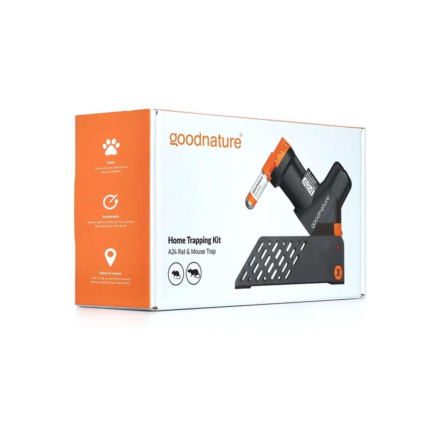 The Goodnature A24 Automatic Rat and Mouse Trap is a revolution in humane rodent control. Its superb engineering and rugged design make it the perfect rat and mouse trap for inside or outside your home or business. The A24 trap automatically kills up to 24 rats or mice with just one CO2 canister, has a bio-attractant lure that lasts six months and only requires monthly checks.