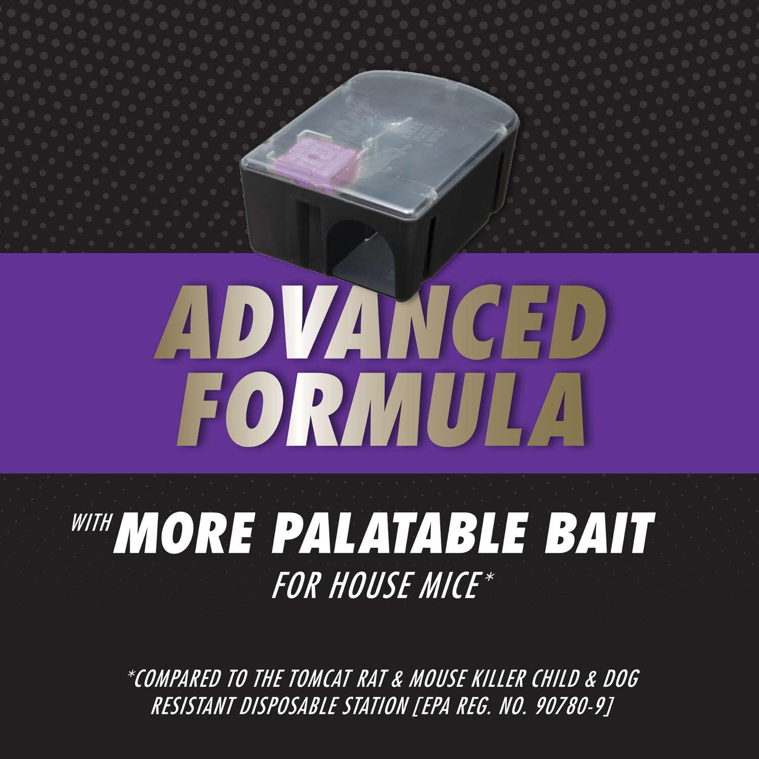Tomcat Rat & Mouse Killer Disposable Bait Station - Advanced Formula is formulated with more palatable bait for house mice (compared to the Tomcat® Rat & Mouse Killer Child & Dog Resistant Disposable Station [EPA Reg. No. 90780-9])