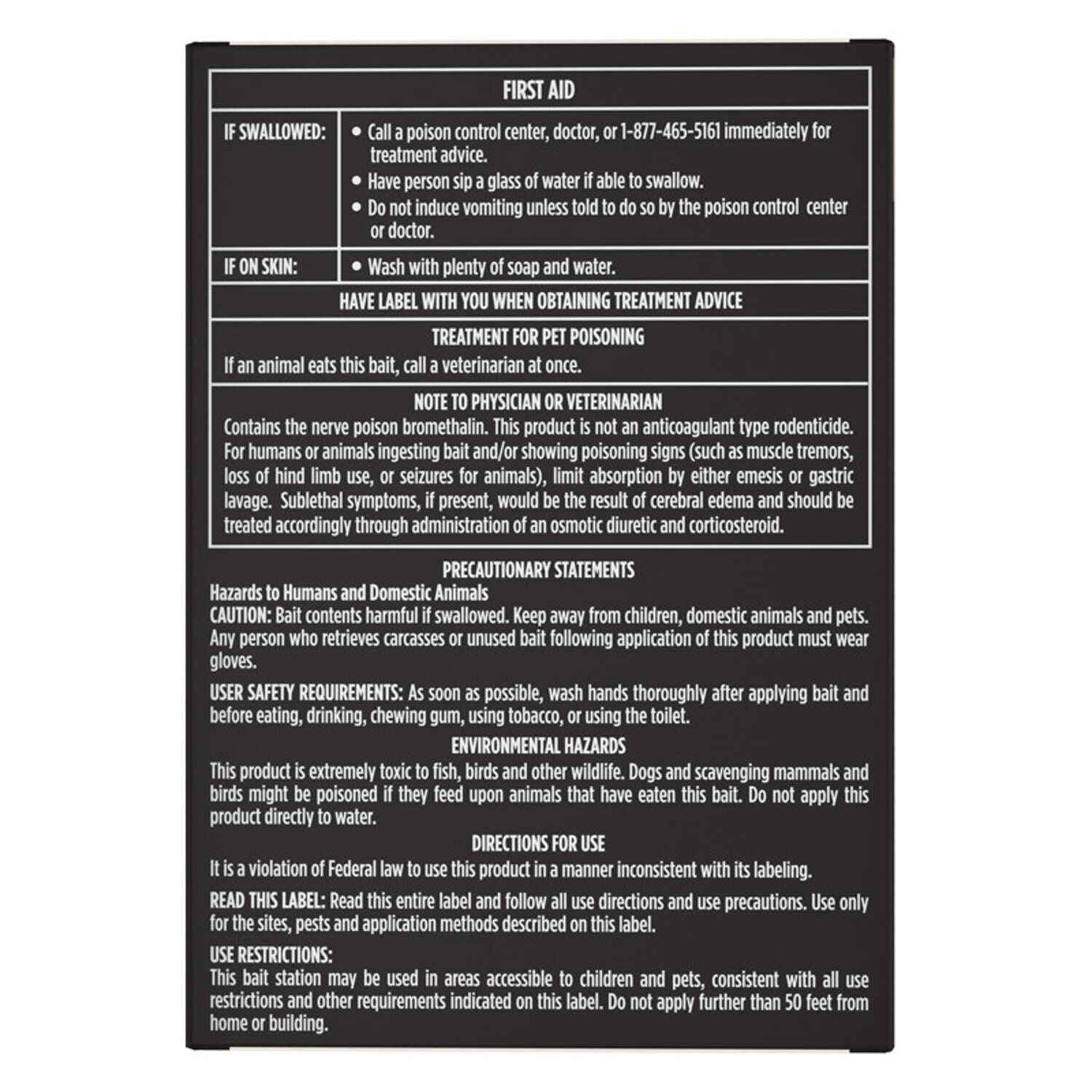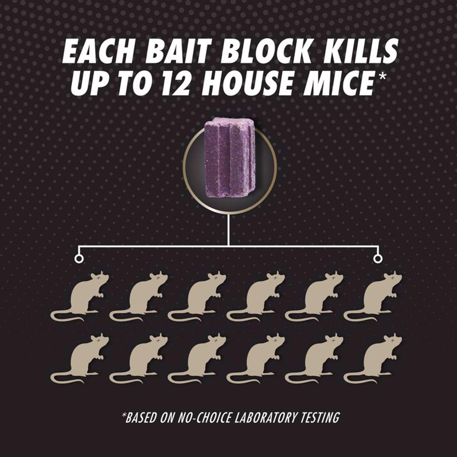 The included bait block kills up to 12 house mice (based on no-choice laboratory testing)