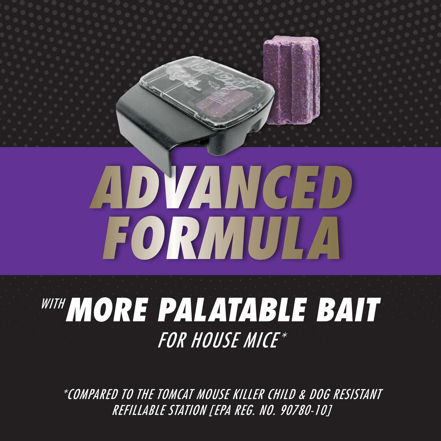 Tomcat Mouse Killer Refillable Bait Station - Advanced Formula is formulated with more palatable bait for house mice (compared to the Tomcat Mouse Killer Child & Dog Resistant Refillable Station [EPA Reg. No. 90780-10])