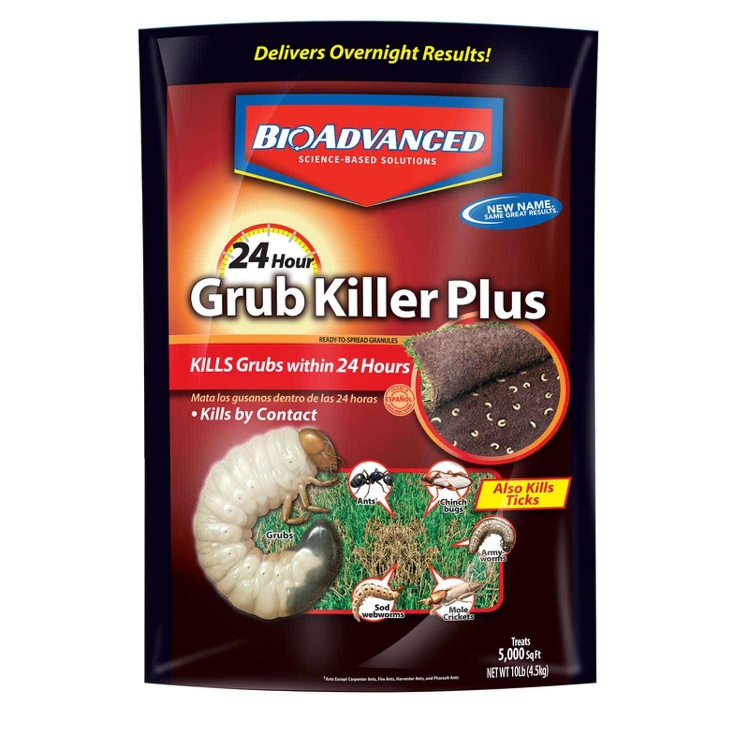 BioAdvanced 24-Hour Grub Killer Plus stops grubs and other listed pests from damaging your lawn. It works on contact and degrades quickly, delivering overnight results. Killing grubs and other pests has never been easier.