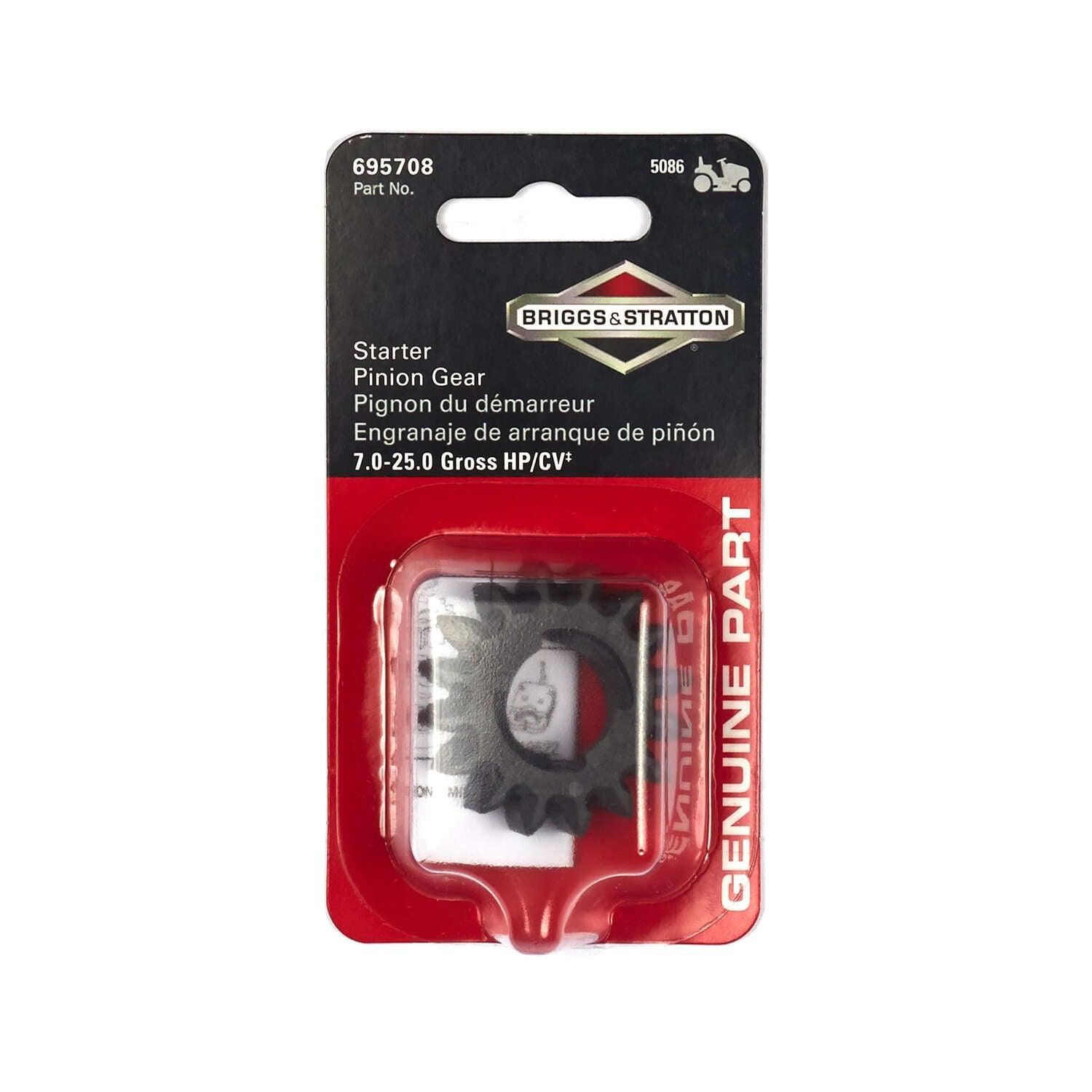 Display pack of 1 (695708) pinion gear. This OEM part ensures proper fit and performance to maintain the life of your Briggs & Stratton engine.