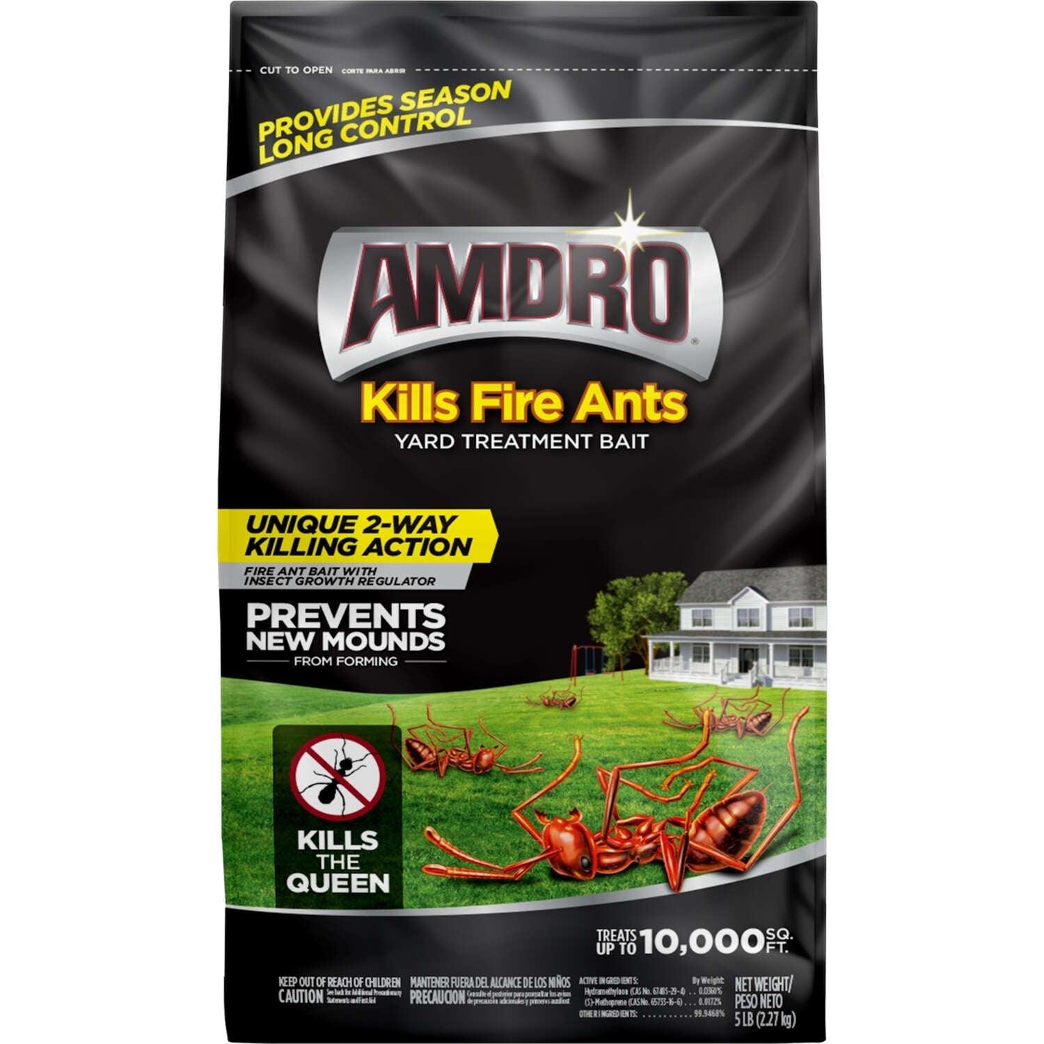 Rid your yard of fire ants with AMDRO Fire Ant Yard Treatment Bait Granules. Made for broadcast application, this product lasts all season and a 2 lb. Once spread, worker fire ants from visible and hidden mounds will take it back to the queen to share. Once the queen and other ants eat it, the whole mound dies.