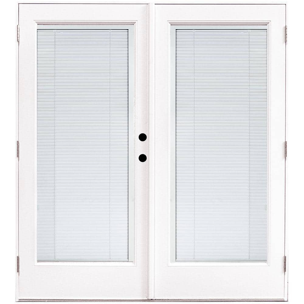 72 in. x 80 in. Fiberglass Smooth White Left-Hand Outswing Hinged Patio Door with Low E Built in Blinds
