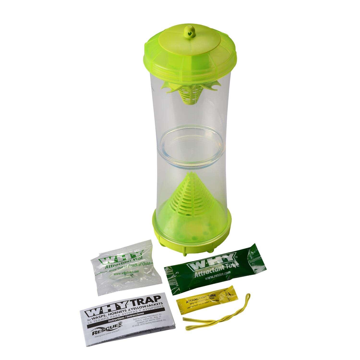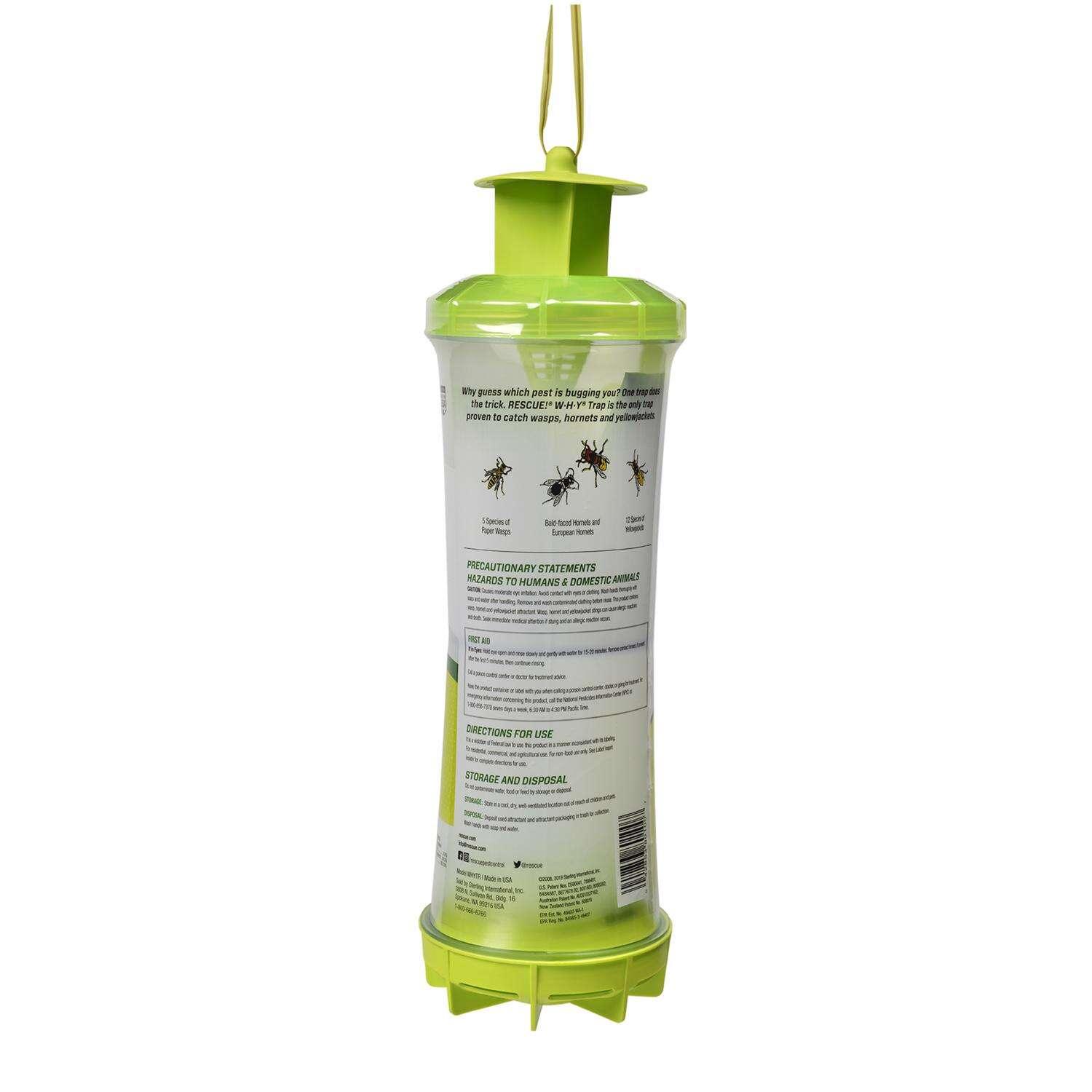 RESCUE! W•H•Y® Trap for Wasps, Hornets, and Yellowjackets comes complete with three attractants, two chambers - and no way out for the insects. Catching 19 different species, the W•H•Y® Trap is the answer for most stinging insect problems.