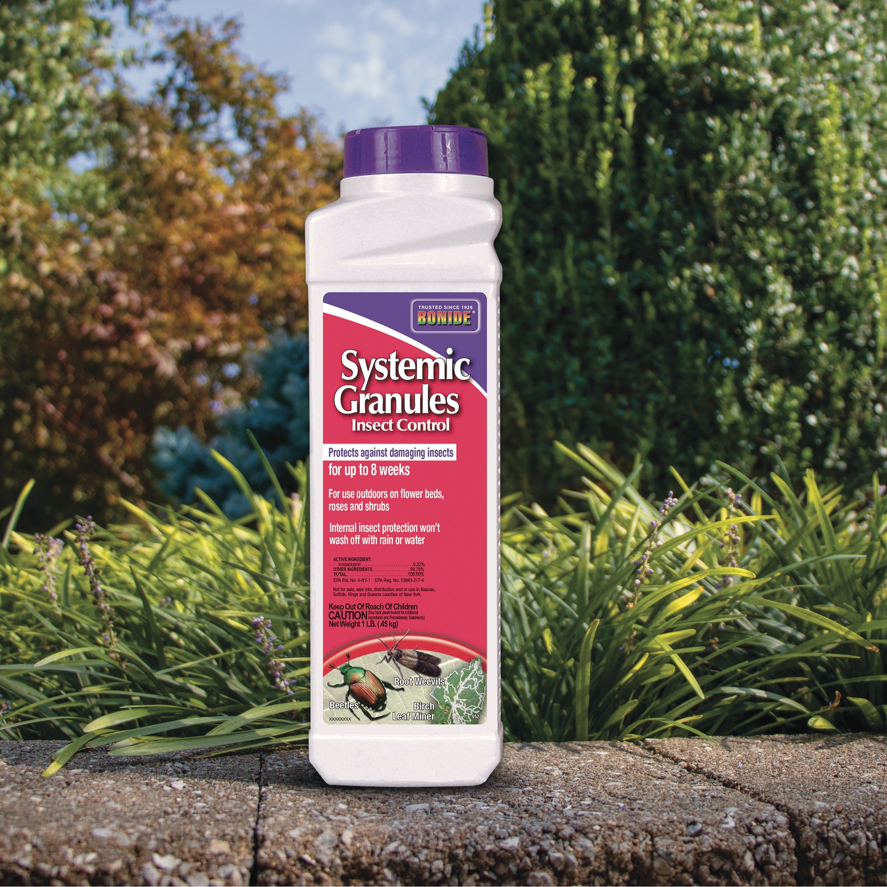 Bonide Systemic Granules deliver long-lasting insect control for flowers, ornamentals, and houseplants. The ready-to-use granules protect plants internally for up to 8 weeks, resisting wash-off from rain or watering.