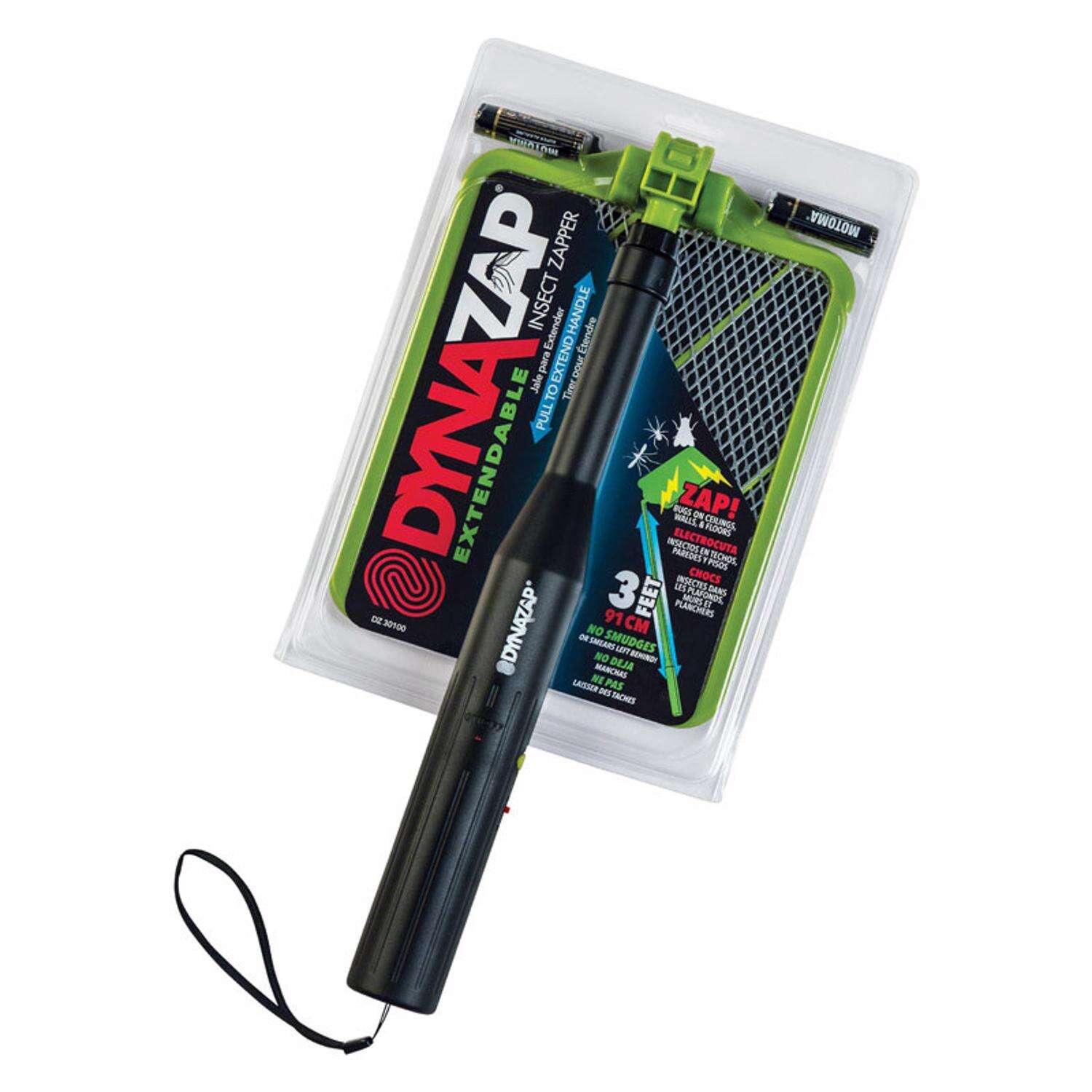 The DynaTrap® DynaZap® Extendable Insect Zapper is a handheld, battery-operated bug zapper that quickly and effectively eliminates flying insects such as mosquitoes, wasps, flies, hornets, yellow jackets, and more. With its innovative telescoping handle that extends up to 3 feet and its pivoting head, you can easily eliminate pest insects in hard to reach places like the ceilings, walls, or floors. Each Insect Zapper comes with a built-in safety feature designed to electrify the unit only when the safety switch is activated. It’s compact size and lightweight design make it ideal for use both indoors and out - in kitchens, backyards, RVs, garages, and more. It also comes equipped with a lanyard for easy storing and two AA batteries for your convenience.