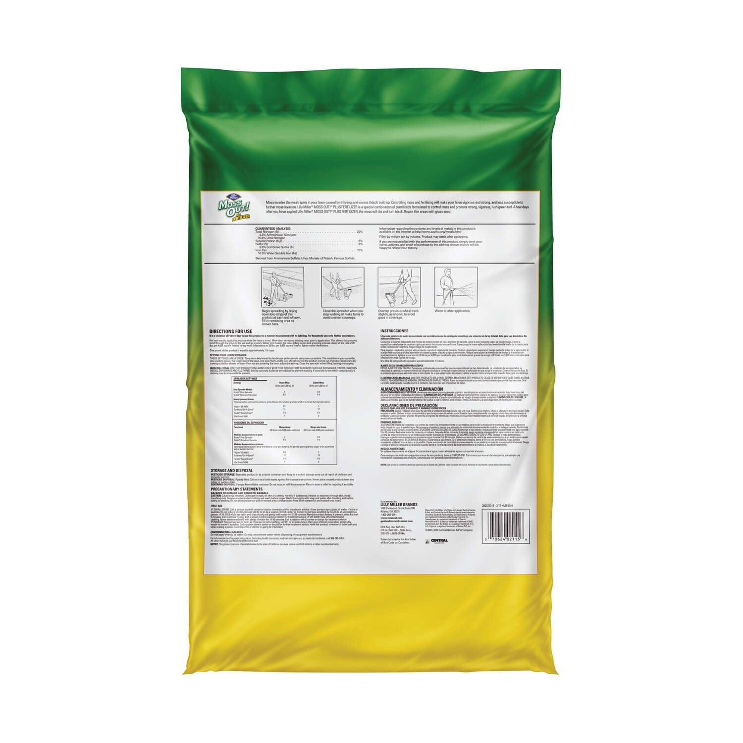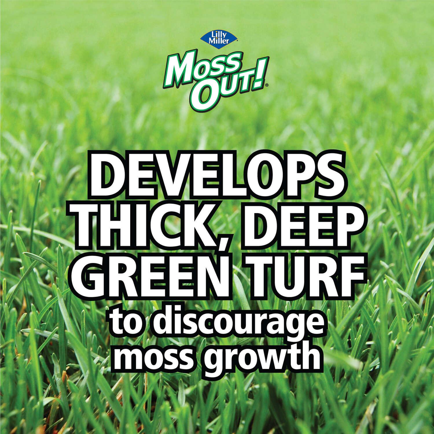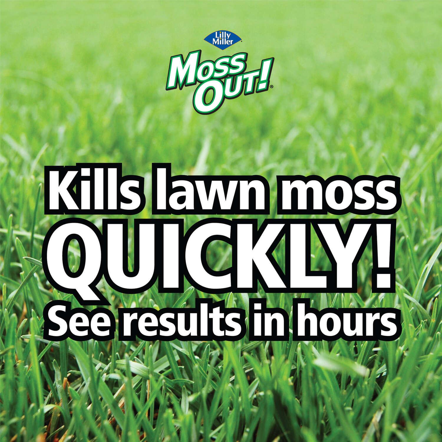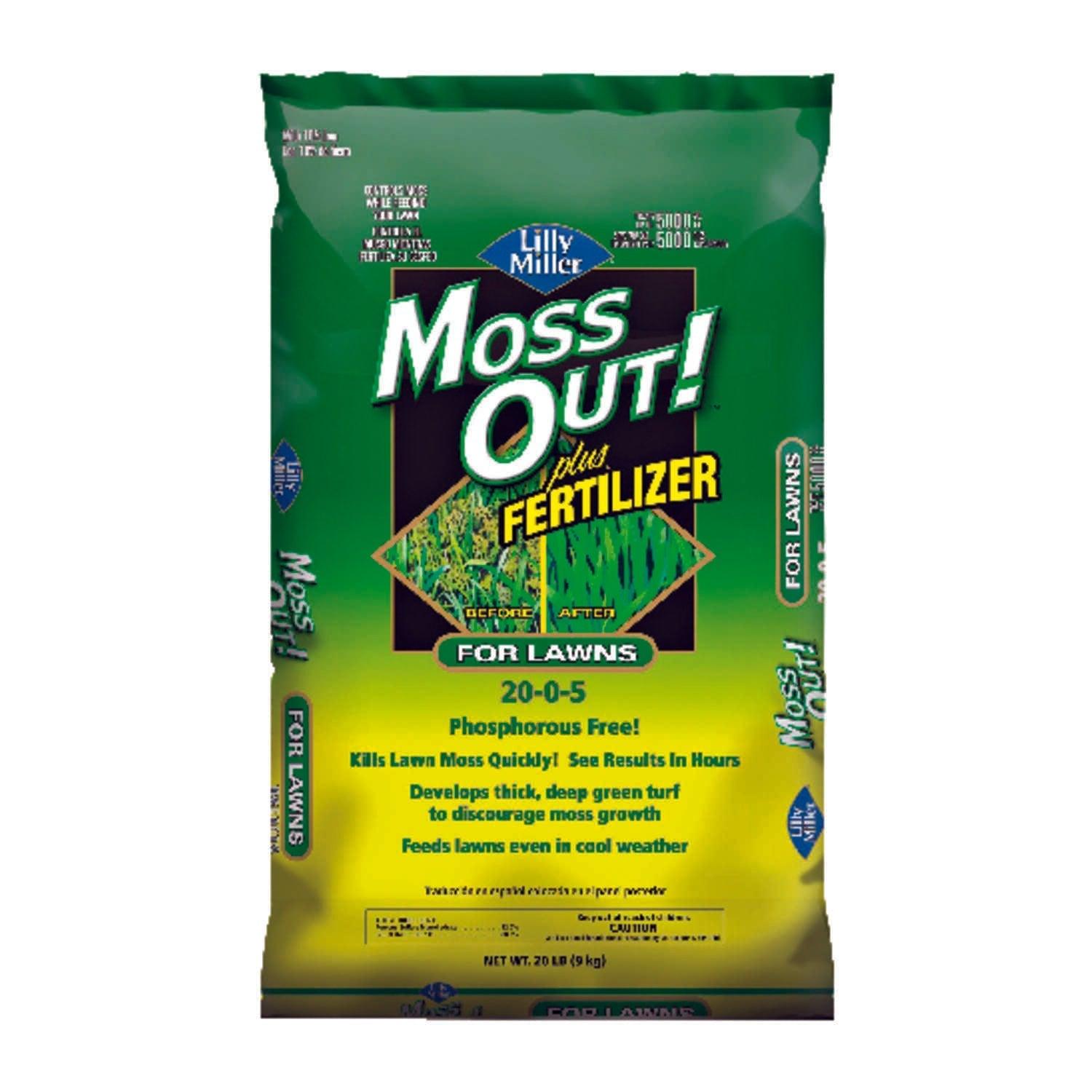 The Lilly Miller 20 lbs. Ready-to-Use Moss out plus fertilizer is an ideal moss-control product for quickly killing lawn moss. In addition to killing moss, it grows thick new turf to discourage moss from growing back. Feeds lawns even in cool weather.