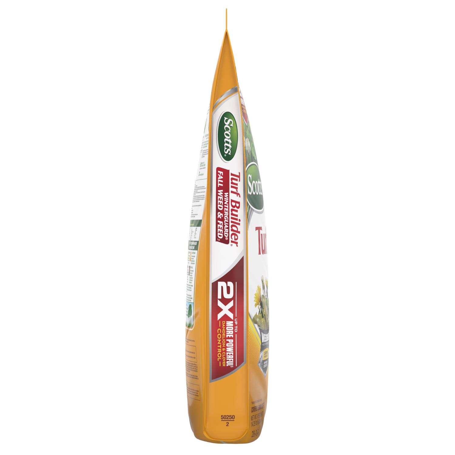 Fall is the best time to feed and with Scotts Turf Builder WinterGuard Fall Weed and Feed3. This lawn food is formulated to deliver the nutrients lawns need in the fall, repairing damage from the heat and drought of the summer and ensuring a better lawn in the spring. It delivers 100% nutrition in every granule, so your lawn gets all of the food with none of the filler, all the while killing weeds for less weeds next spring.