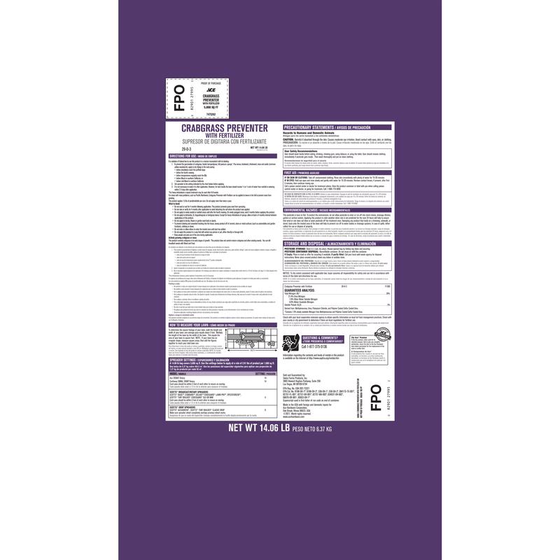 Ace Crabgrass Preventer with Fertilizer delivers pre- and early post-emergent crabgrass control while feeding your lawn for up to 8 weeks. Ideal for all grass types, it helps build strong roots and promotes a thick, green lawn with season-long weed prevention when applied as directed.