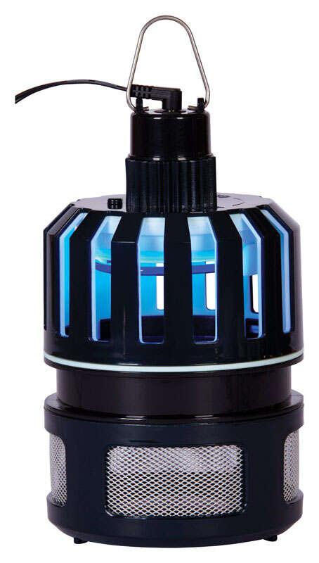 - Powerful, yet whisper-quiet vacuum fan sucks insects into the retaining cage where they dehydrate and die