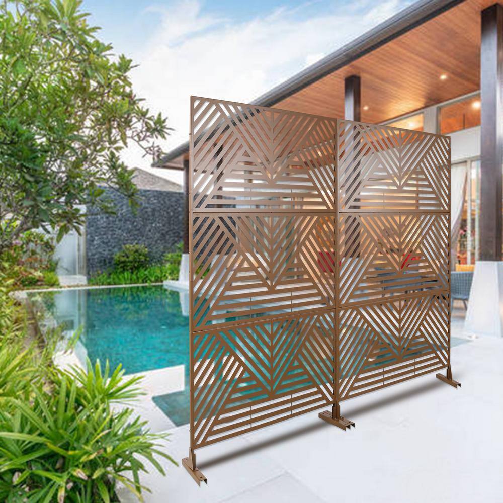 Upgrade your indoor and outdoor spaces with this stylish 76"x48" brown metal privacy screen. Engineered for both durability and elegance, it provides privacy while enhancing aesthetics. With a timeless design, it effortlessly fits into any environment, offering easy assembly and long-lasting rust resistance.