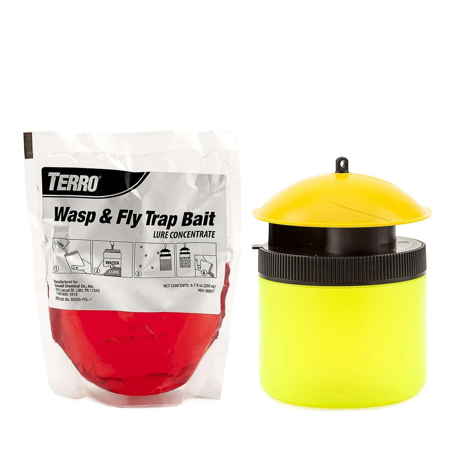 Wasps, yellow jackets, hornets, and not to mention flies, can turn outdoor festivities sour in no time. With the TERRO Wasp & Fly Trap, you can defend your property against these flying pests and get back your peace of mind. Using a unique, dual-purpose bait, this trap attracts and kills both pain-inflicting insects such as wasps, hornets and yellow jackets, while also targeting nuisance flies. The bait is easy-to-use - all you need to do is add water to the bait, and your trap is up and ready in no time. Unlike many traditional fly traps which feature an unpleasant odor, TERRO Wasp & Fly Trap bait is stink free! For added effectiveness, this trap boasts a Bug Lock Lid, which prevents insects from escaping after they have entered the trap. For your convenience, this trap is also reusable to allow for continuous insect protection. Simply throw out the old bait when it is full and pour in fresh bait!