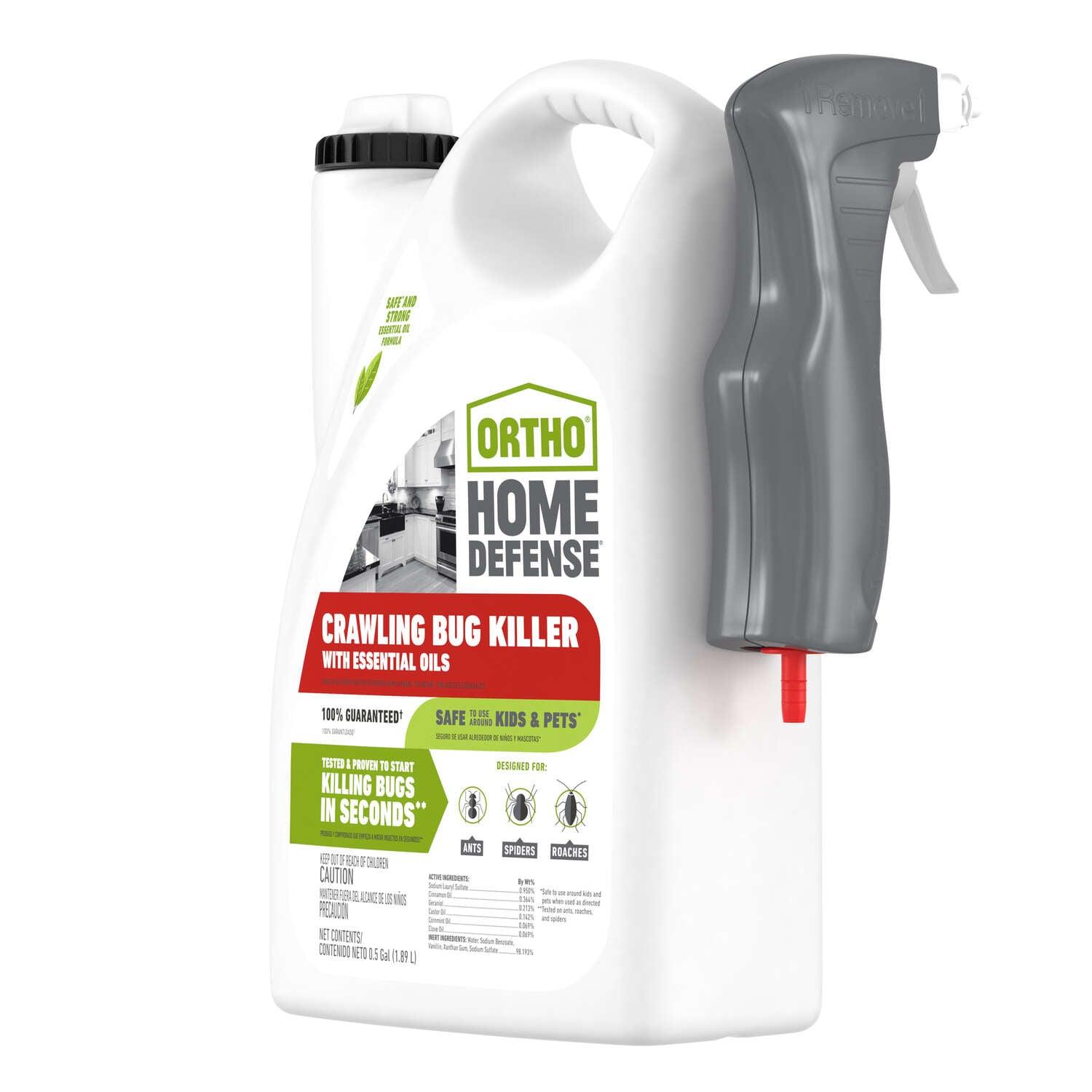 Ortho Home Defense Crawling Bug Killer with Essential Oils is safe+ and strong. Tested and proven to start killing bugs in seconds++ but safe to use around kids and pets+. Formulated with essential oils such as cinnamon oil, geranoil, castor oil, cornmint oil, and clove oil. (+Safe to use around kids and pets when used as directed) (++Tested on ants, roaches, and spiders (excluding Black Widow, Brown Recluse, Hobo)