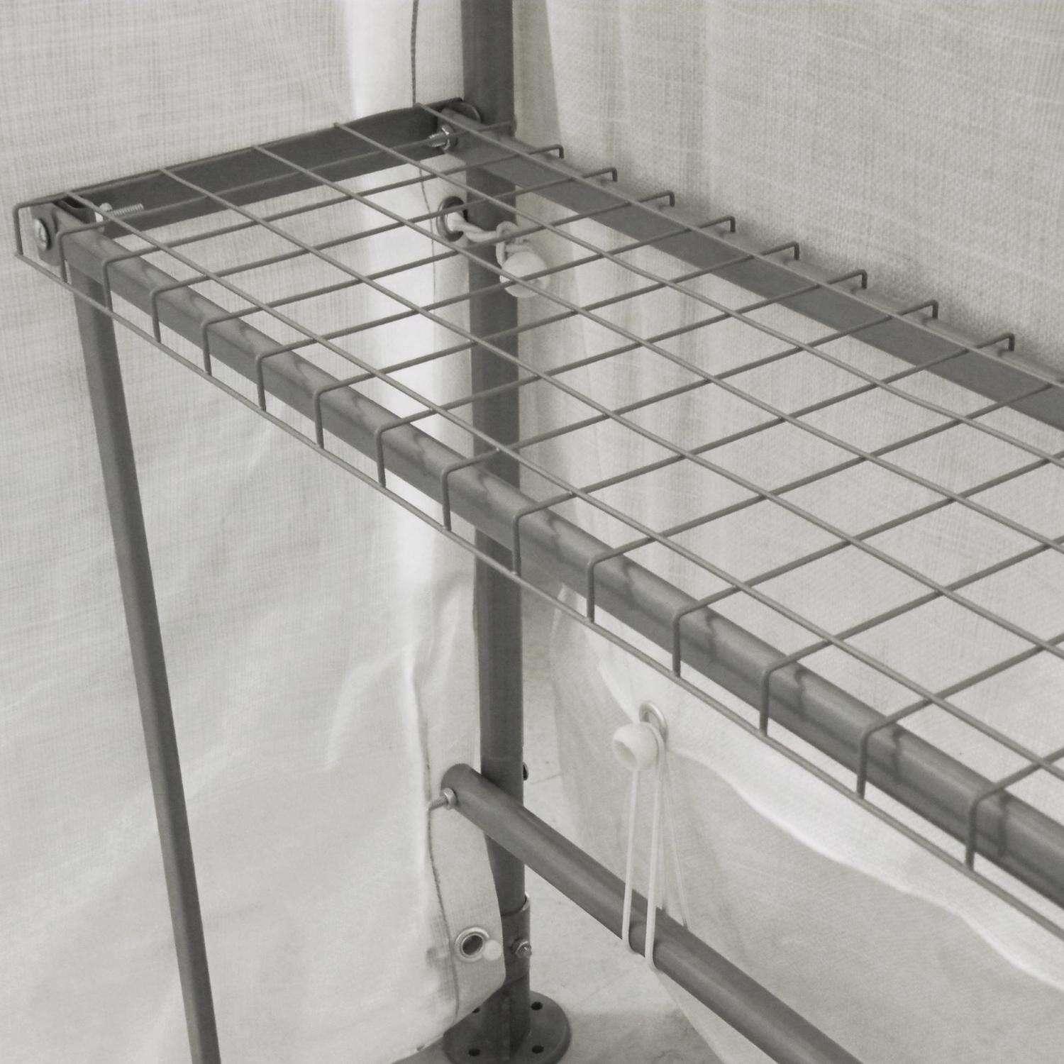 Start seedlings or extend your growing season with the GrowIT 6 x 8 ft. Backyard Greenhouse with Integrated Shelving. This easy-to-assemble, compact Greenhouse is constructed with high quality steel and features 4 ft. shelving on both sides for built-in staging of plants. Screen vents at both ends provide airflow and temperature control. The translucent fabric allows a significant amount of diffused light to reach the plants, while reducing the amount of harmful UV light. This means less damage to plants as well as reduced fungus and harmful insects.