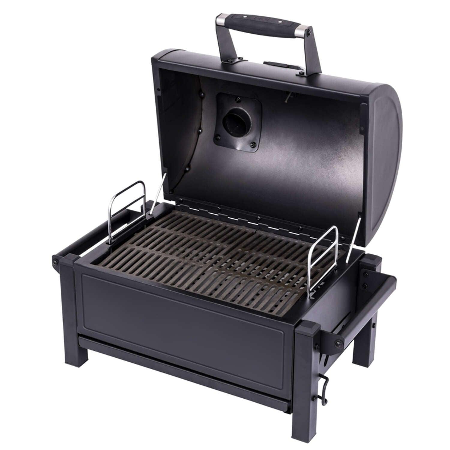 The Oklahoma Joe's Rambler Tabletop Charcoal Grill is the perfect portable grill with its heavy-duty construction that ensures durability you can trust. The height-adjustable charcoal tray lets you grill with high heat or cook low and slow. It comes with a grate lifter that gives you easier access to the charcoal.
