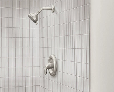 This Moen Adler shower-only faucet features a Spot Resist brushed nickel finish that stays cleaner by resisting fingerprints and water spots. The single lever handle pairs with the Posi-Temp pressure-balancing valve for consistent water temperature and reliable performance.