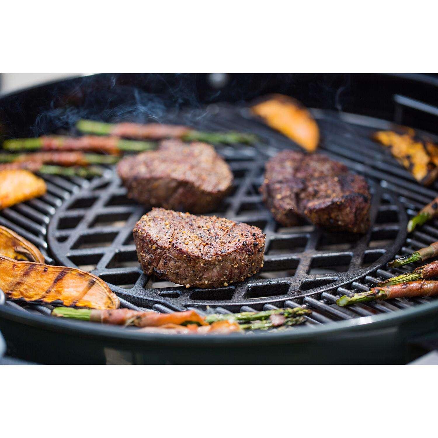 This hinged cooking grate allows you to add more charcoal without removing the grate and a 12 in. grate insert in the center is removable. This flexible design is just the ticket when less traditional charcoal cooking methods are desired. For instance, simply remove the 12 in. insert and replace with a GOURMET BBQ SYSTEM INSERT, such as the Sear Grate, Griddle or Wok (each sold separately).