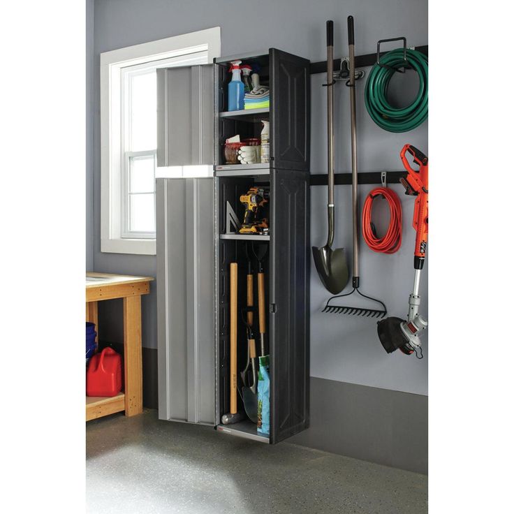 Rubbermaid FastTrack 14 x 16 x 56 In Garage Tool Locker Kit Rail Storage System