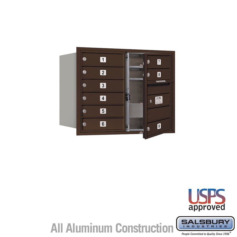 9-Door Bronze Recessed Mounted Mailbox with USPS Access