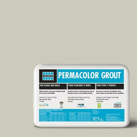 Introduce an expert's perspective on the Laticrete 90 Light Pewter Permacolor Grout: Achieve a professional finish with this 25 lb bag of light pewter grout. Made with Permacolor technology, it provides long-lasting, consistent color and superior stain resistance. Trust in this industry-leading product for your grouting needs.