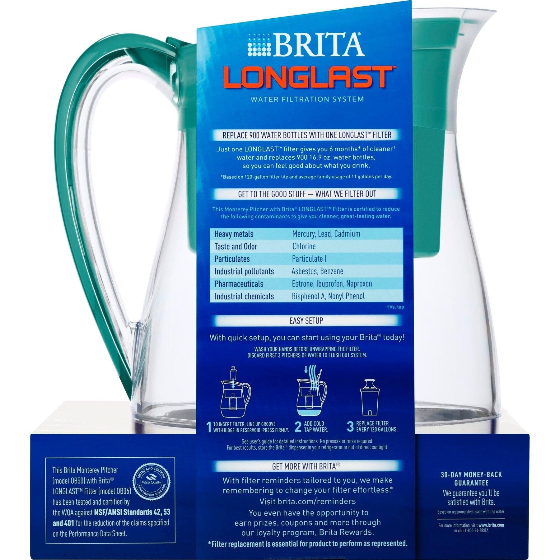 Brita 10 Cup Monterey Water Pitcher with 1 Longlast Filter - BPA Free - Green