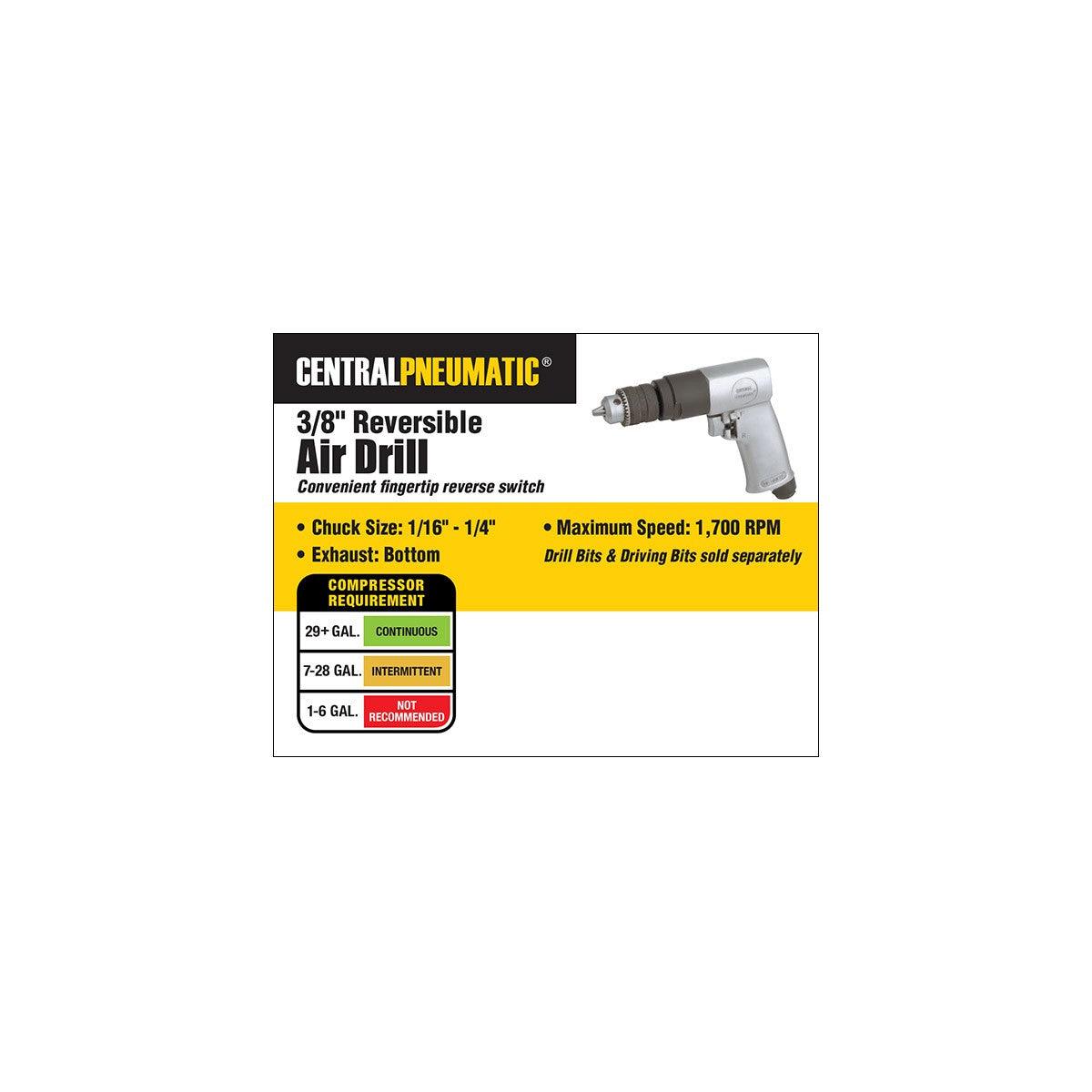 Central Pneumatic 3/8 in. Reversible Air Drill, Model 94585