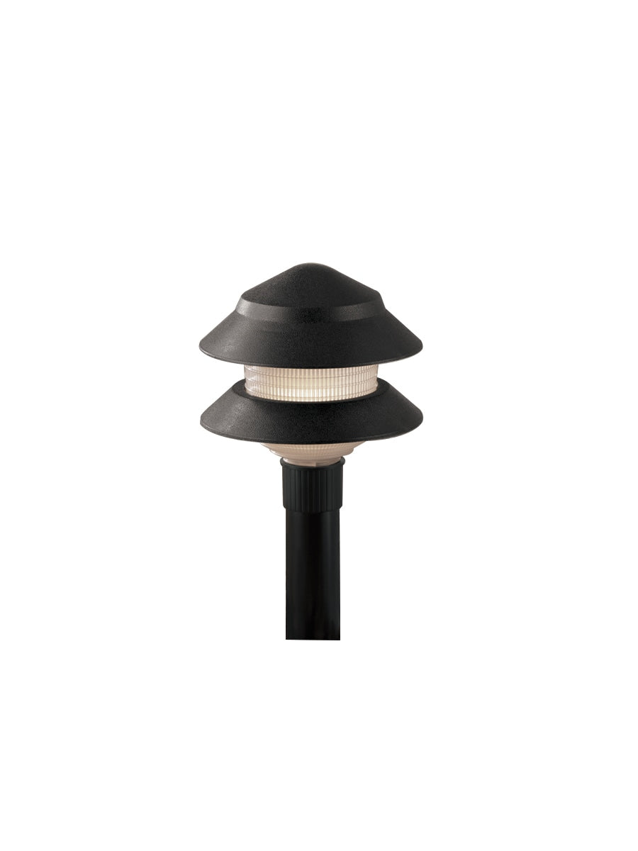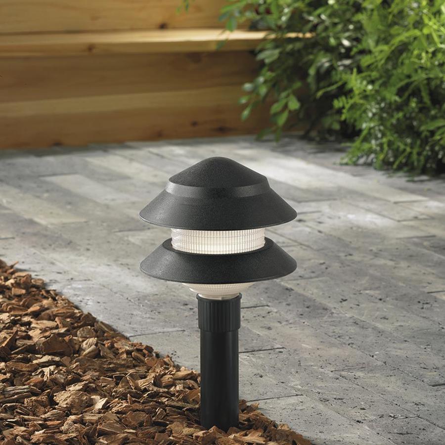 Illuminate walkways and garden beds with this Portfolio low-voltage path light. The all-weather plastic housing and frosted ribbed lens deliver warm 2700K accent lighting with 38 lumens, ideal for paths and landscape borders. Works with 12–14V landscape transformers and includes a 4W T5 wedge-base bulb for quick setup.