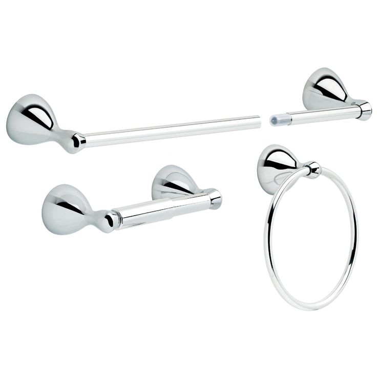 Accessory set includes a towel bar with a 6-in extender piece which allows you to extend towel bar from 18-in to 24-in, toilet paper holder and towel ring
