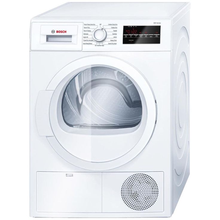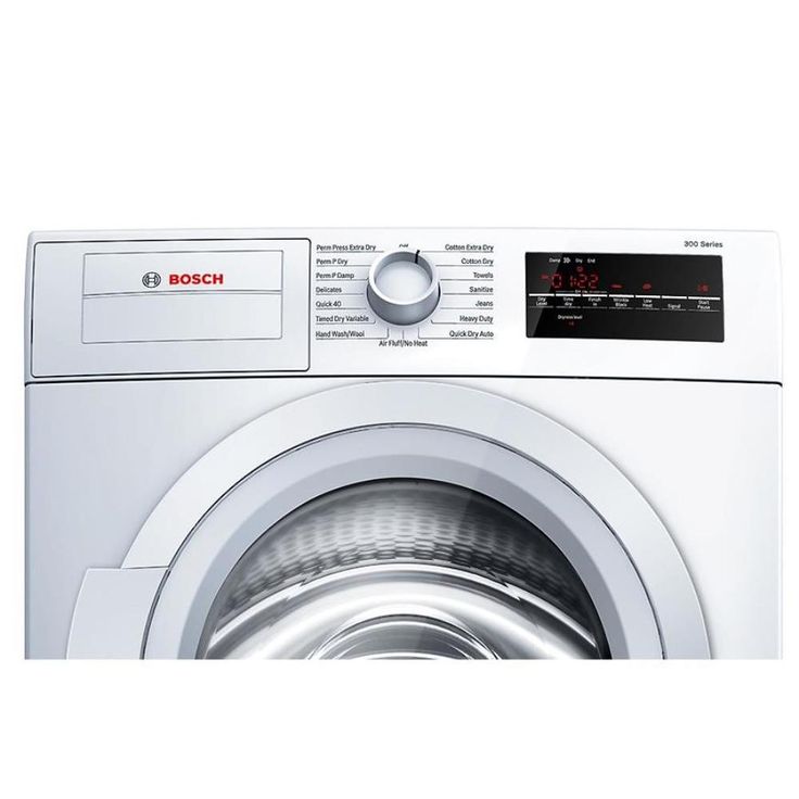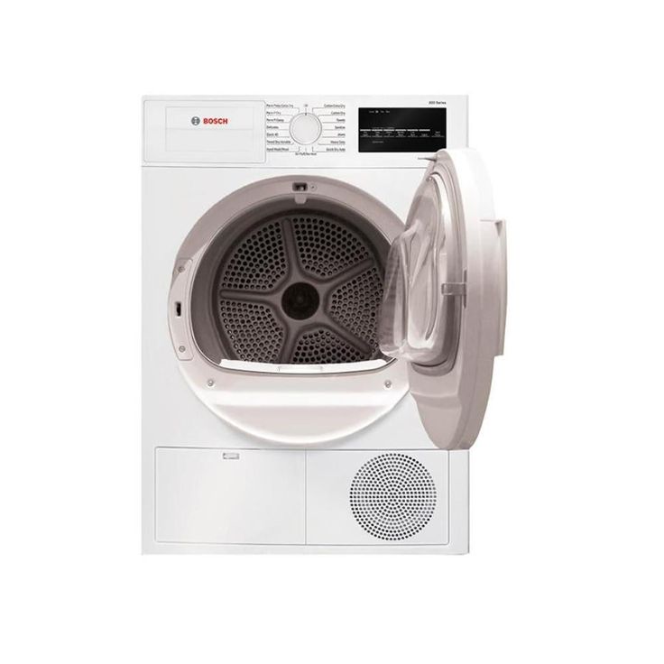 Bosch 300 Series 4-cu ft stackable electric dryer features condensation drying that releases moisture through the water drain, eliminating the need for venting and simplifying installation