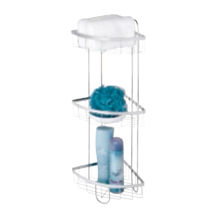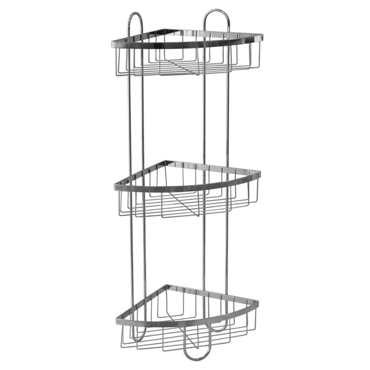 Fits neatly in a shower or bathroom corner Durable chrome plated finish Bottom and middle shelf can hold a bottle up to 10 inches tall Ventilated wire design keeps stored items easy to dry