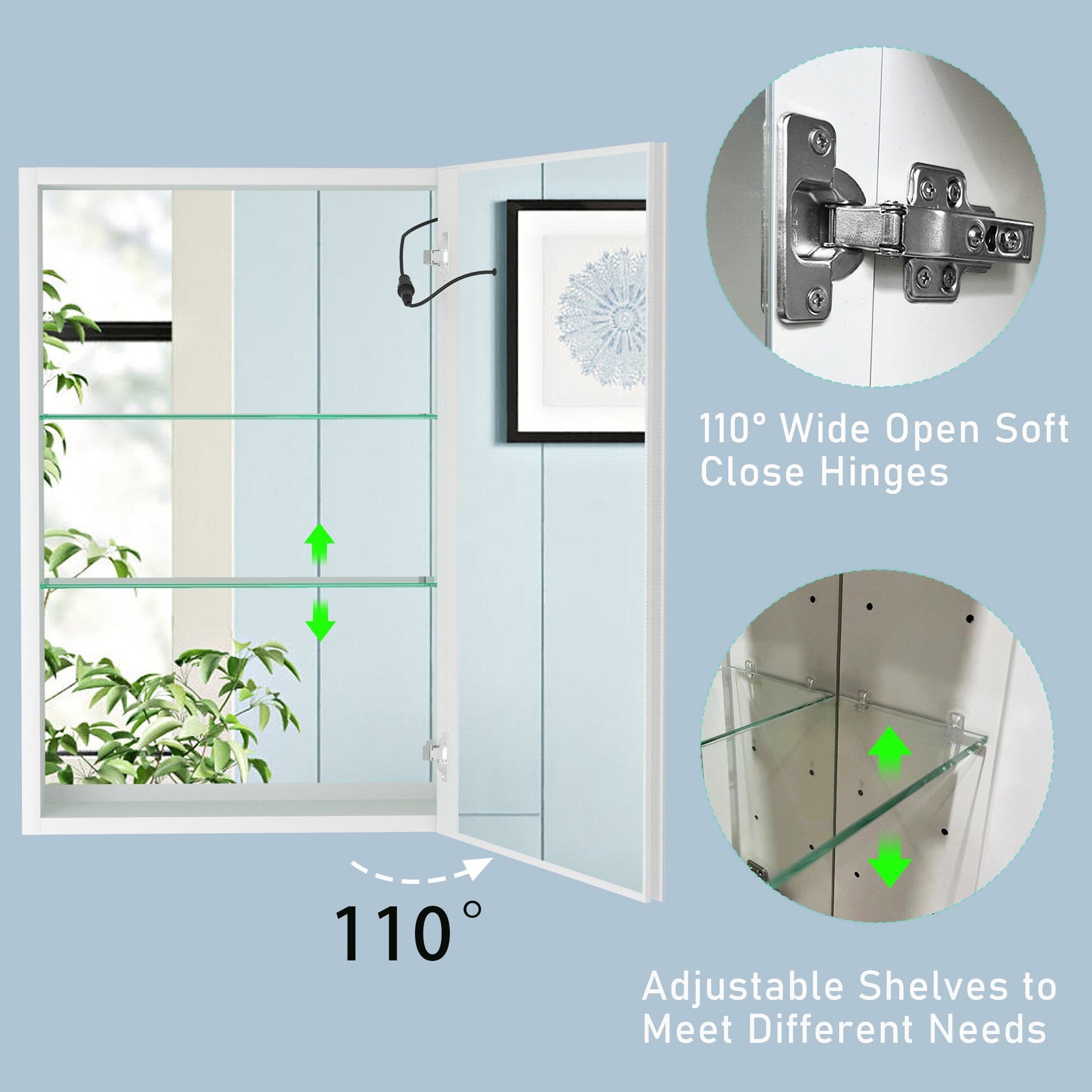 AAZJ 30-in x 20-in LED Fog Free Surface/Recessed Mount White Mirrored Soft Close Medicine Cabinet