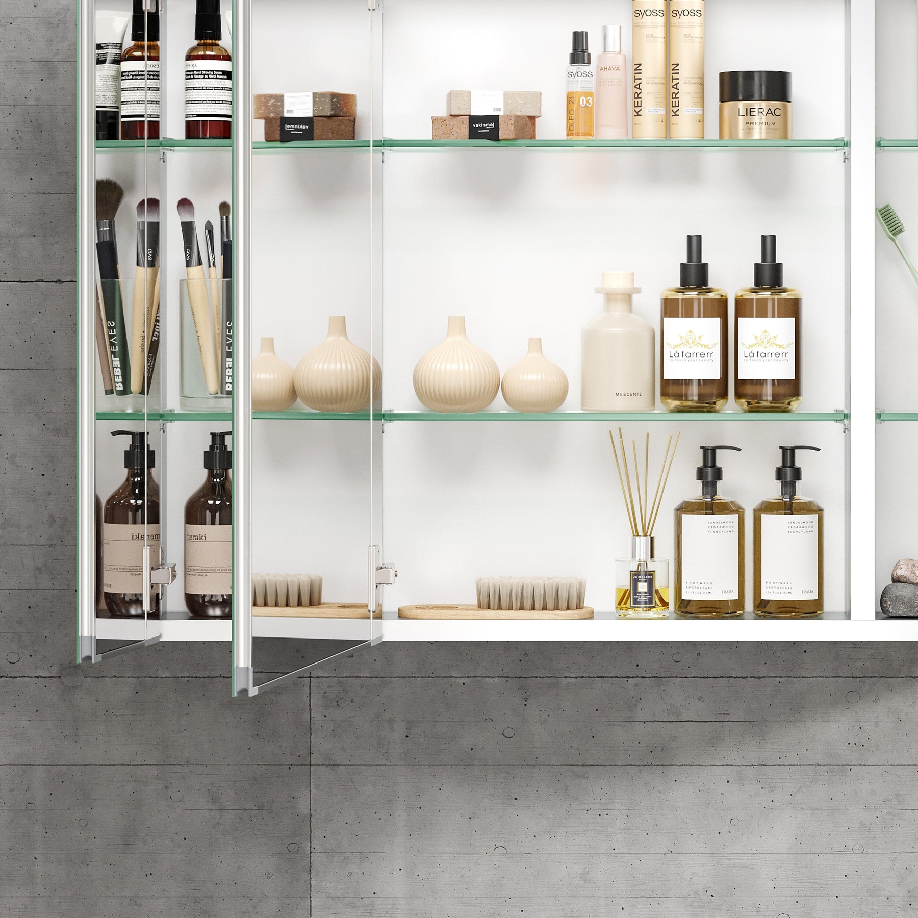 Design: Tri-view mirrored doors with invisible handle create a clean, seamless look