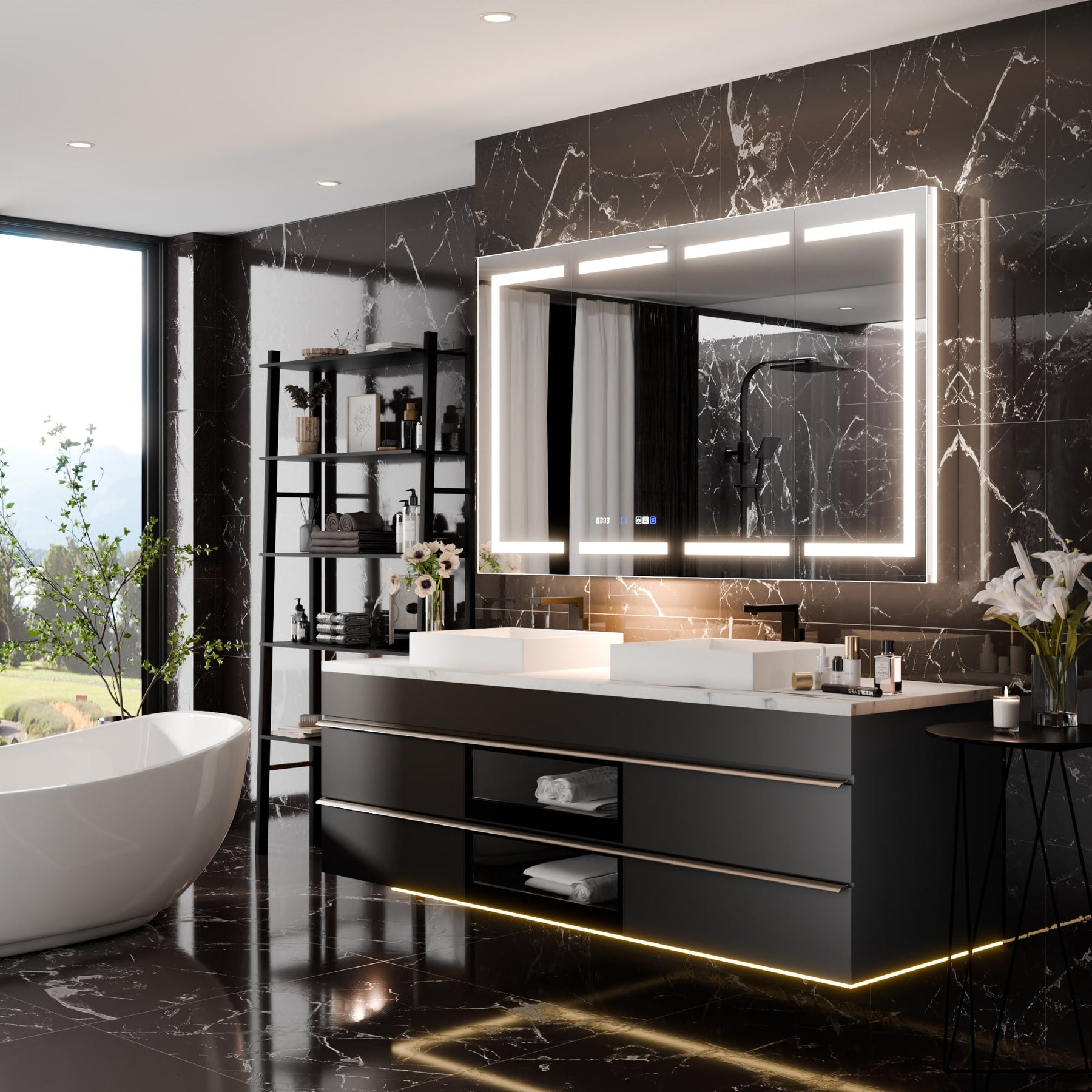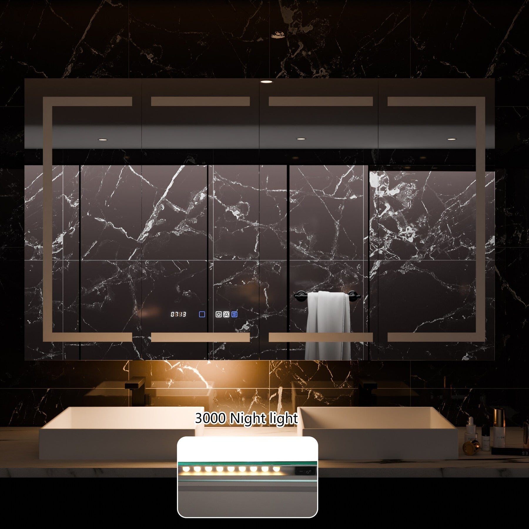 Q: Can the lighting be customized? A: Yes, both the brightness and color temperature can be adjusted to create the perfect bathroom ambiance.