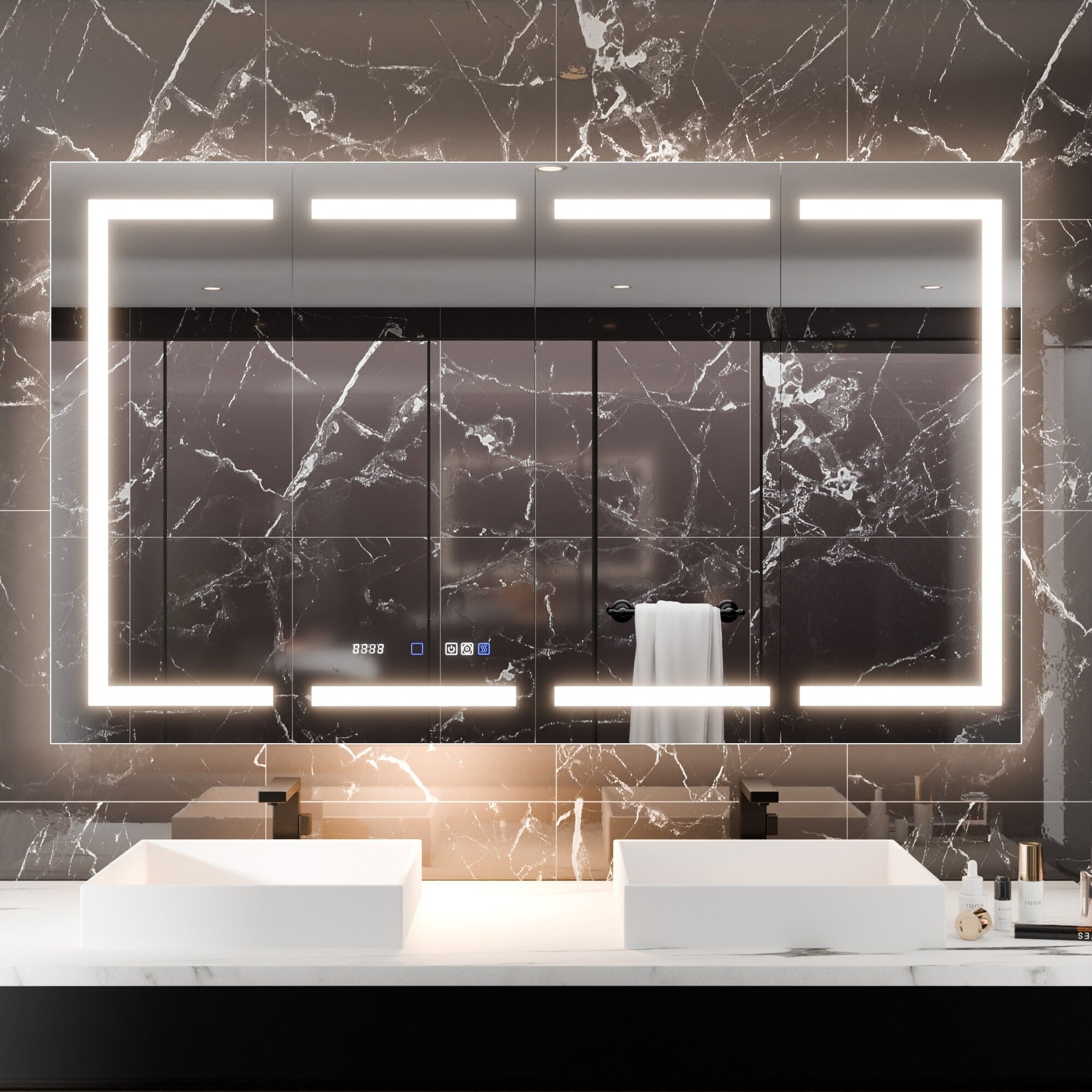 Transform your bathroom into a bright, sophisticated haven with the AAZJ LED Medicine Cabinet. Its seamless blend of technology and design offers an illuminated elegance ideal for morning rituals and evening retreats. The striking LED frame casts an enchanting glow, capturing the essence of modern luxury. Style it with lush green plants or minimalist toiletries for a touch of serene refinement. Truly essential, this piece marries practicality with the finest in contemporary design.