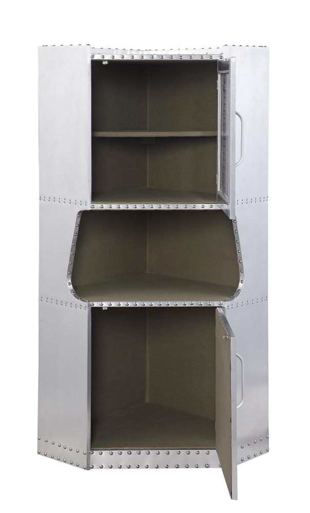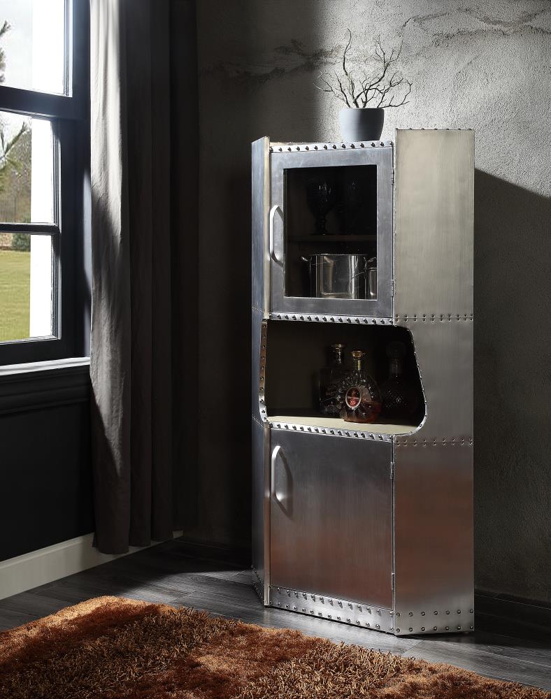 The ACME Furniture Brancaster Utility Storage Cabinet is a sturdy and stylish solution for organizing your space. Made with a durable steel frame and patchwork aluminum exterior, this freestanding cabinet offers both functionality and a sleek design. Perfect for kitchens or living rooms, it provides versatile storage with its spacious interior compartments.
