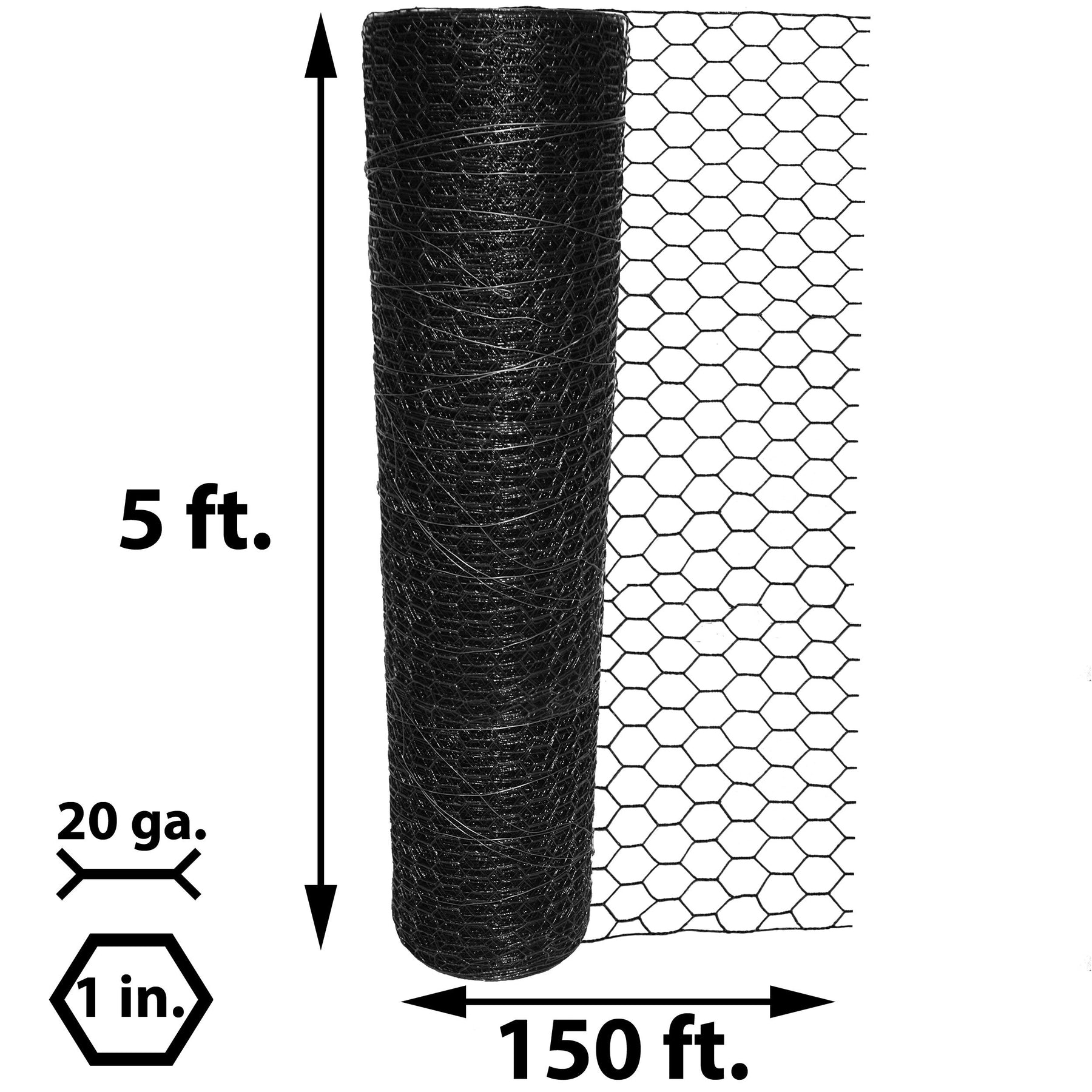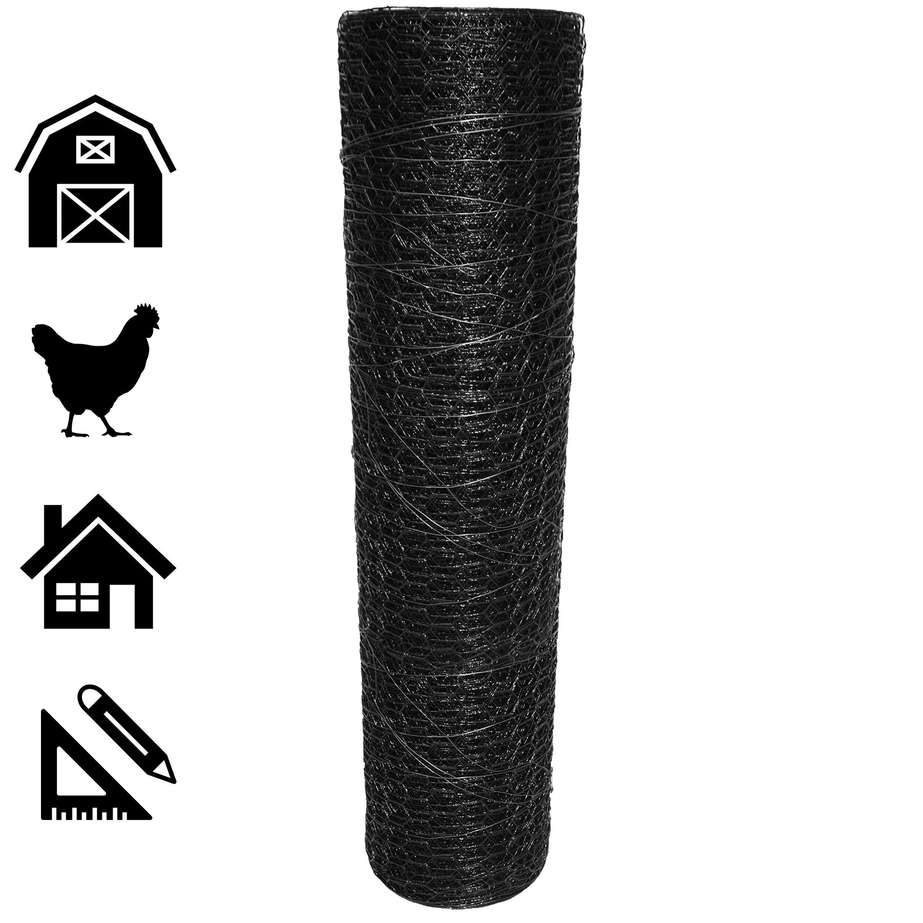 Acorn International 150-ft x 20-Gauge Black Galvanized Steel Chicken Wire Rolled Fencing with Mesh Size 1-in