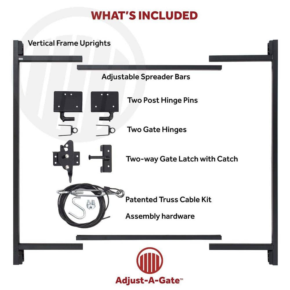 Construct a dependable, anti-sag gate easily with the Adjust-A-Gate Steel Gate Frame Kit. This versatile system fits openings from 60 to 96 inches and is ideal for both new installations and repairs of existing gates. Built with rust-resistant, powder-coated steel, it's designed to withstand the elements while maintaining effortless functionality.