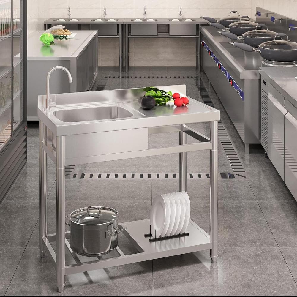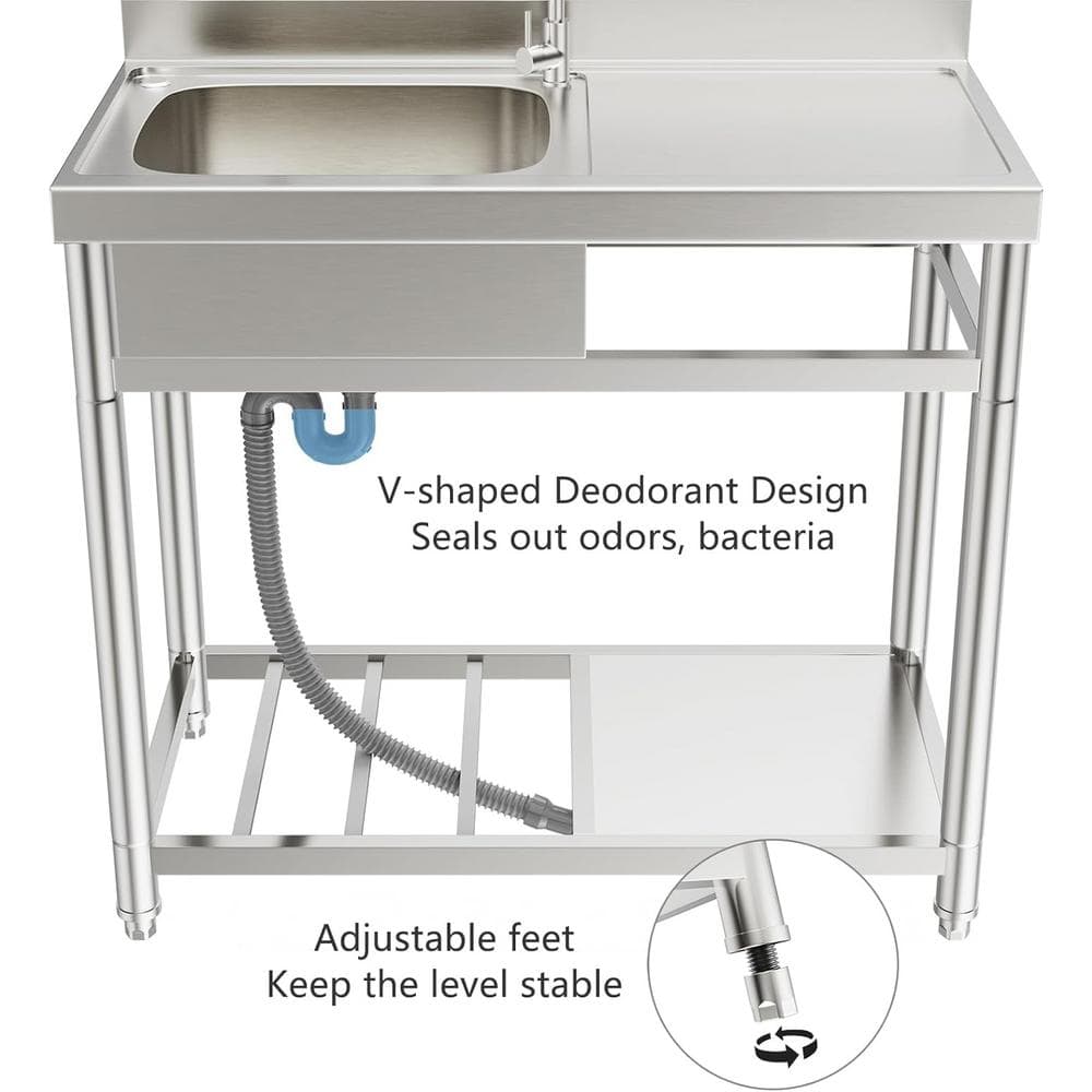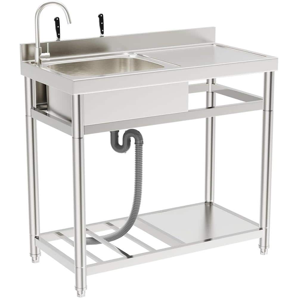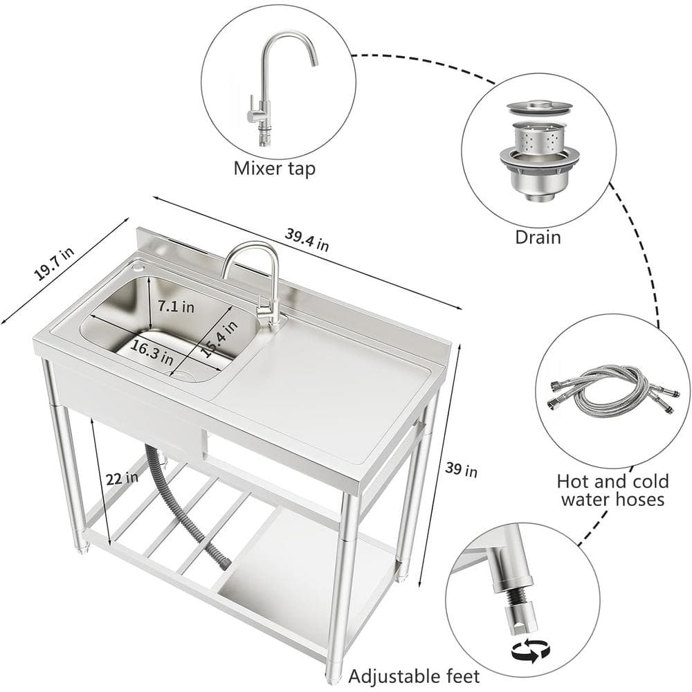 Adrinfly 20 in. x 39 in. Freestanding Stainless Steel Utility Sink with Hot/Cold Faucet & Drain Kit