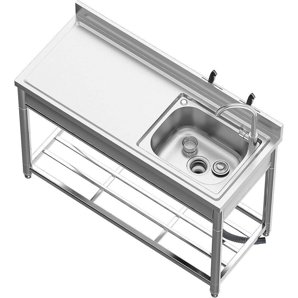 Adrinfly Stainless Steel Freestanding Utility Sink with Workbench & Faucets