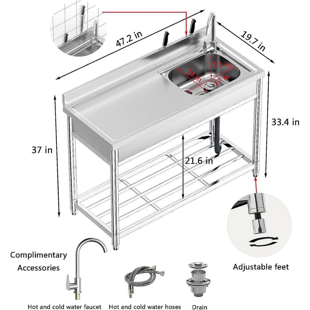 Transform your workspace with the Adrinfly Freestanding Utility Sink, designed in durable stainless steel for both indoor and outdoor use. Featuring a spacious bowl, 360° swivel faucet, and ample dual shelving, it elevates efficiency and hygiene in any setting. Ideal for professional or home use, this utility sink offers a versatile solution for all cleaning and preparation needs.