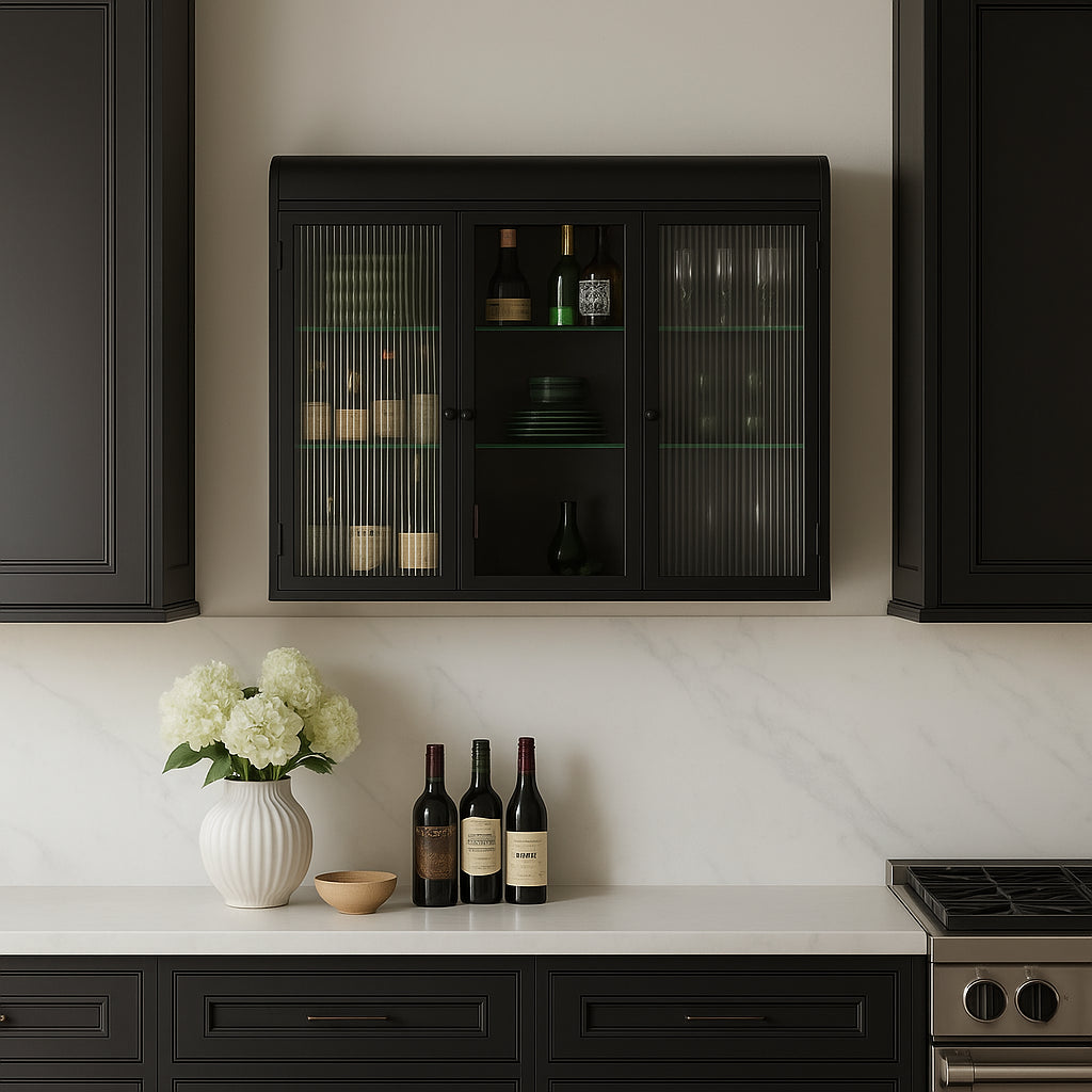 Adrinfly 3-Door Arched Wall-Mounted Glass Cabinet in Black