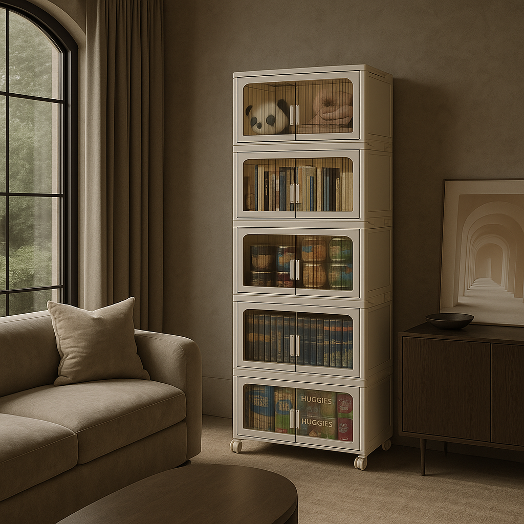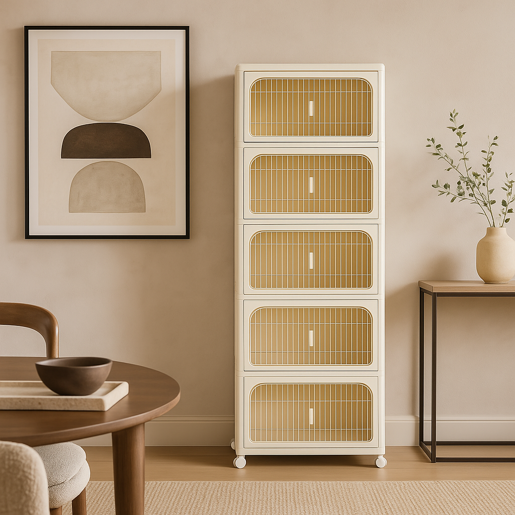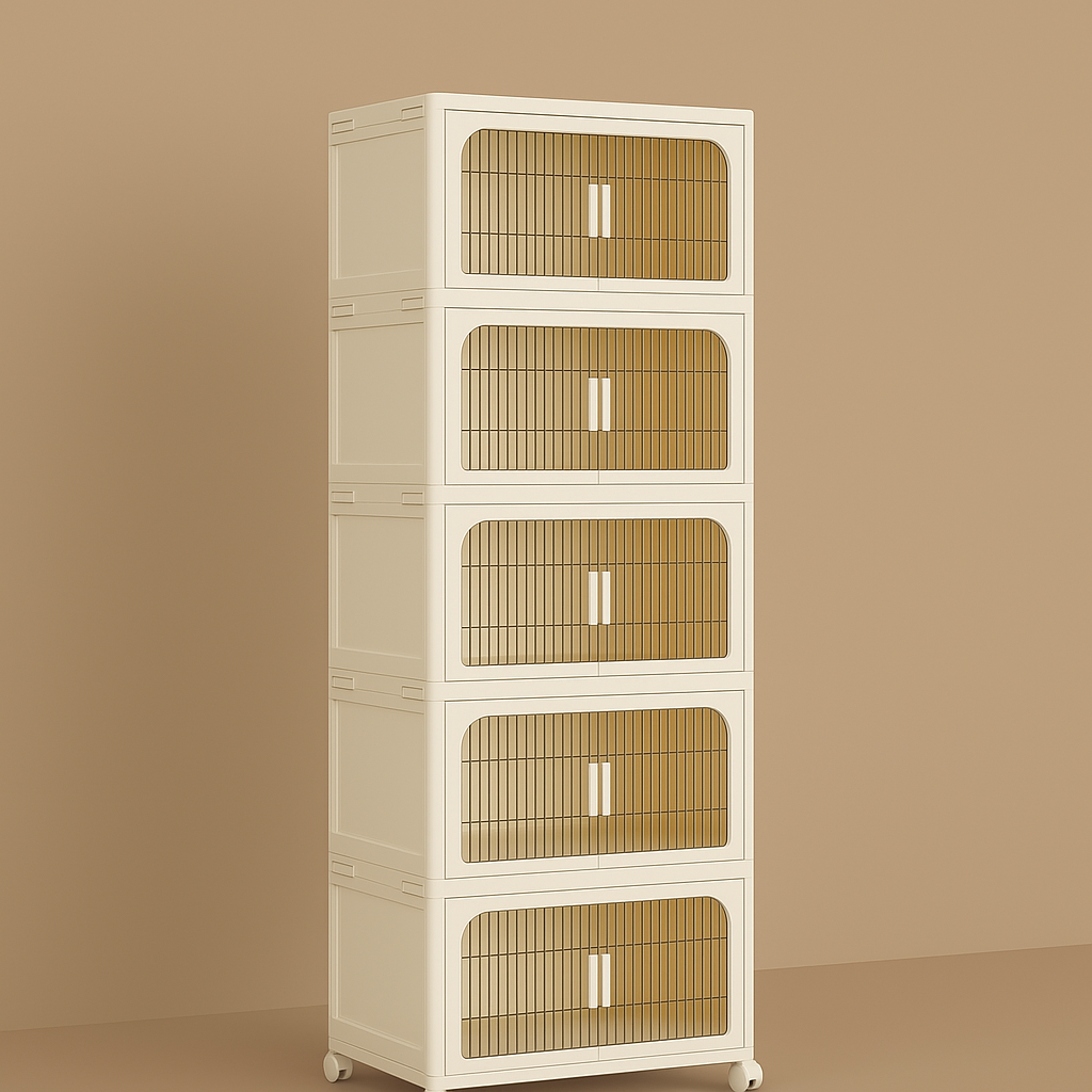 The Adrinfly 5-Tier Folding Storage Cabinet combines functionality and style, featuring a compact design with smooth-rolling wheels and magnetic doors for secure storage. Perfect for organizing any space, it offers easy assembly and durable construction.