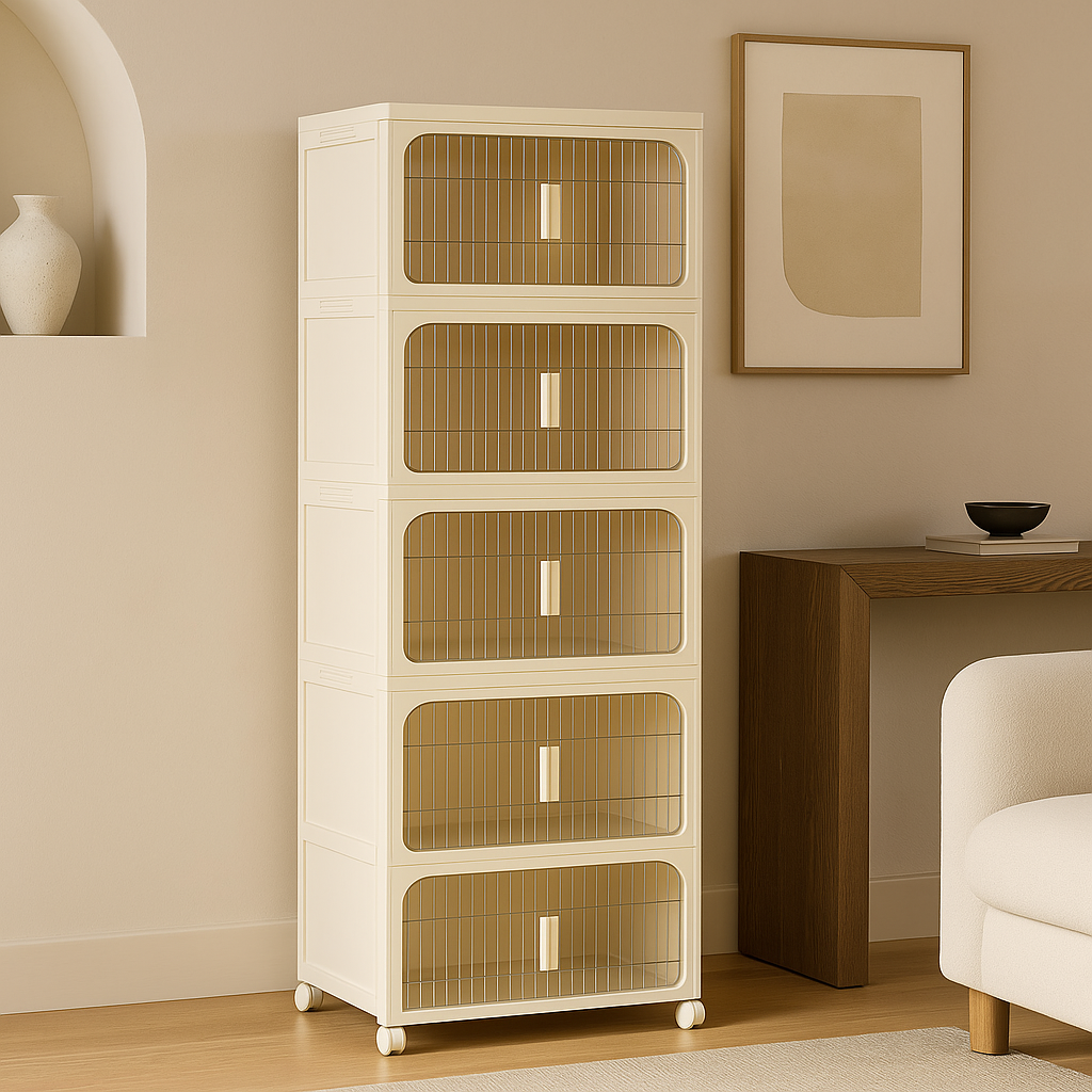 Adrinfly 5-Tier Folding Storage Cabinet with Wheels and Magnetic Door