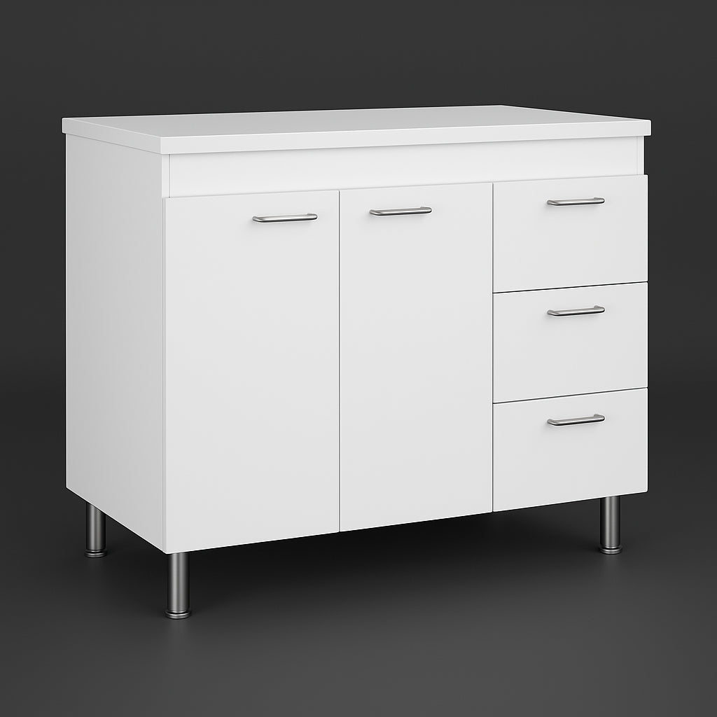 The Adrinfly Base Double Door Cabinet offers a sleek design with ample storage space, featuring three drawers and a minimalist white finish. Perfect for kitchens, bathrooms, or utility rooms, it combines functionality with modern aesthetics.