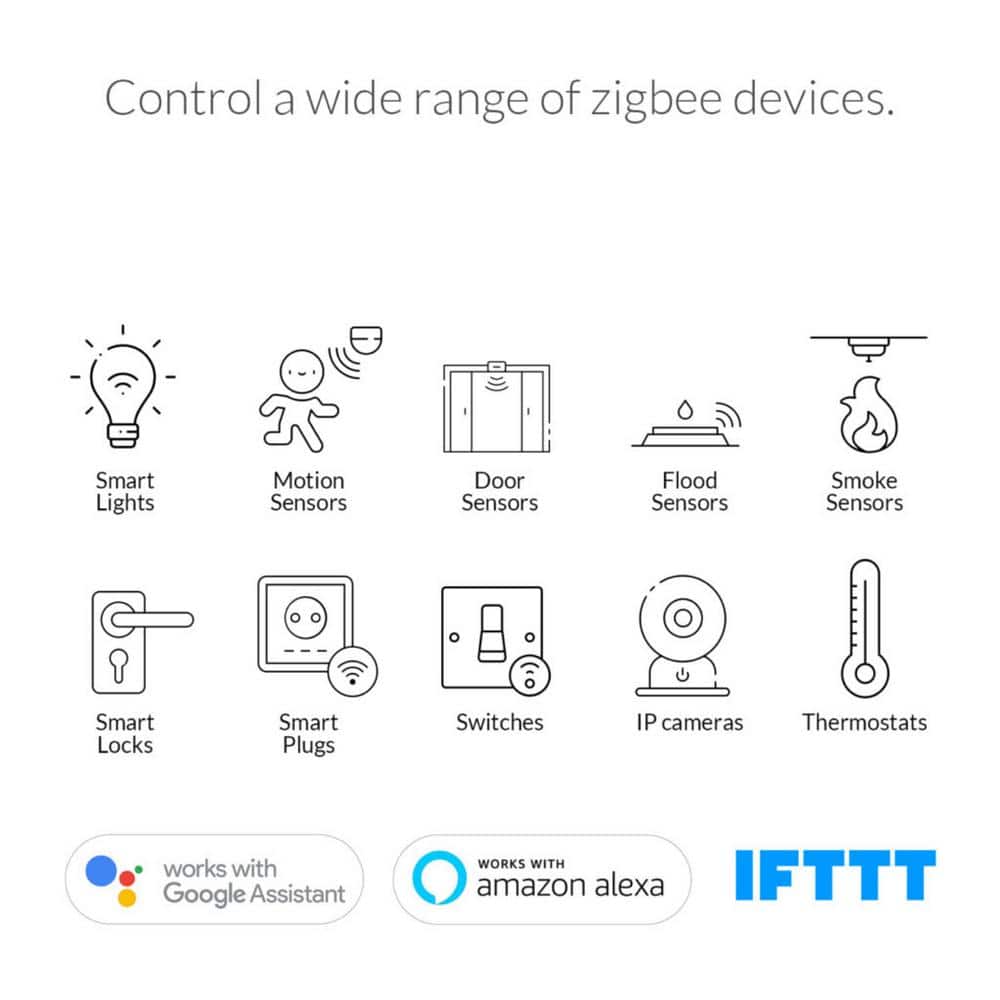 • Wide Zigbee Compatibility: Connects bulbs, sensors, plugs, locks, switches, thermostats, and more (up to 100 devices)