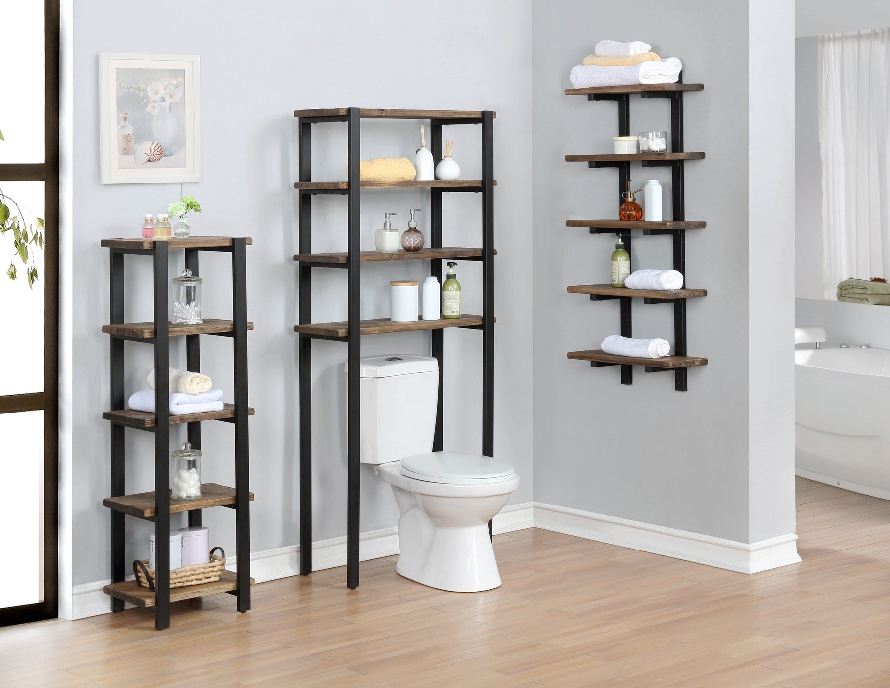 Q: Can the cabinet support heavy items? A: The cabinet offers five shelves, each with a capacity of 15 lbs., suitable for holding lighter linens, décor, and bath essentials.
